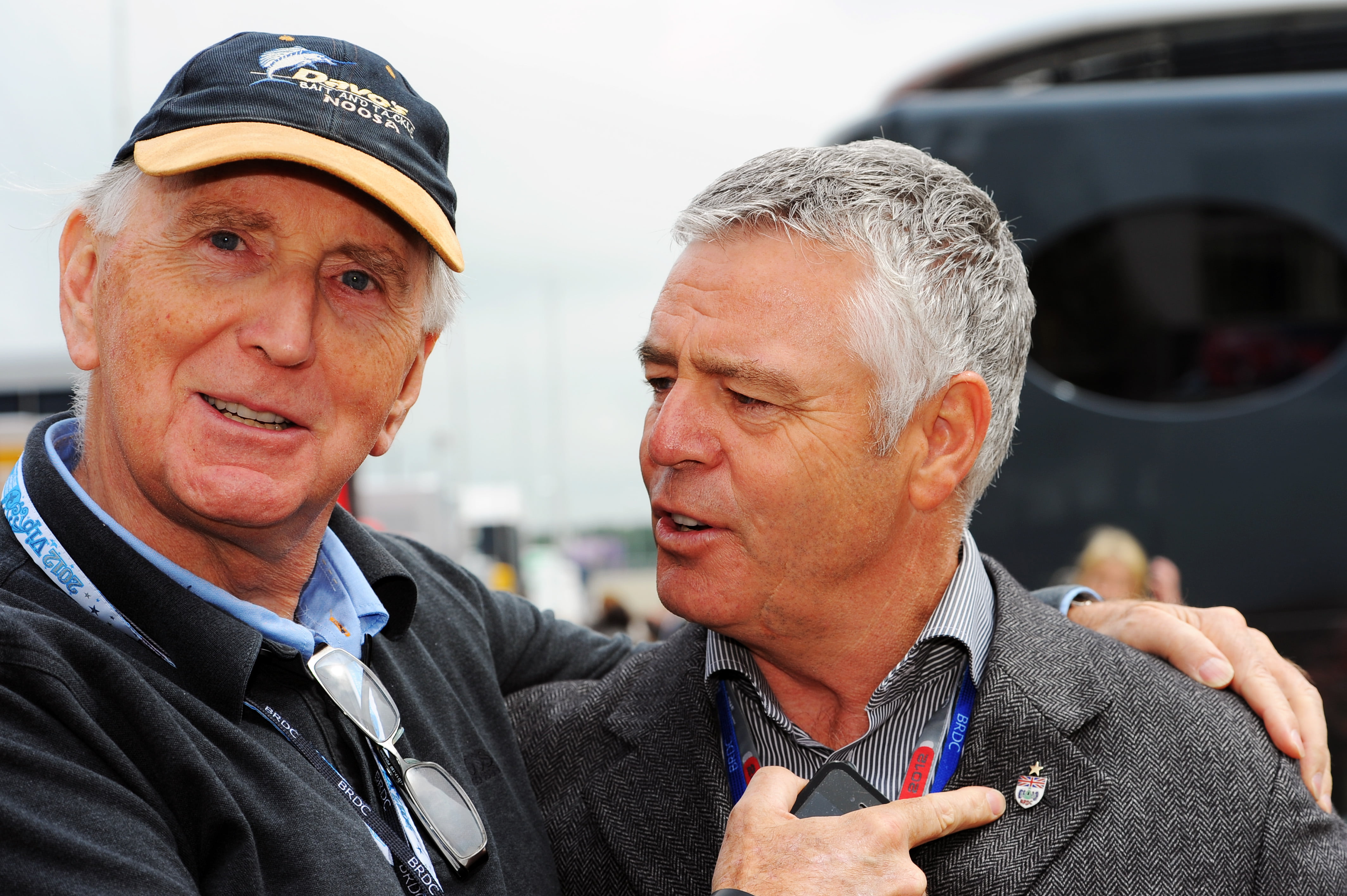 Derek Warwick (rechts) op de foto met voormalig McLaren-coureur John Watson.