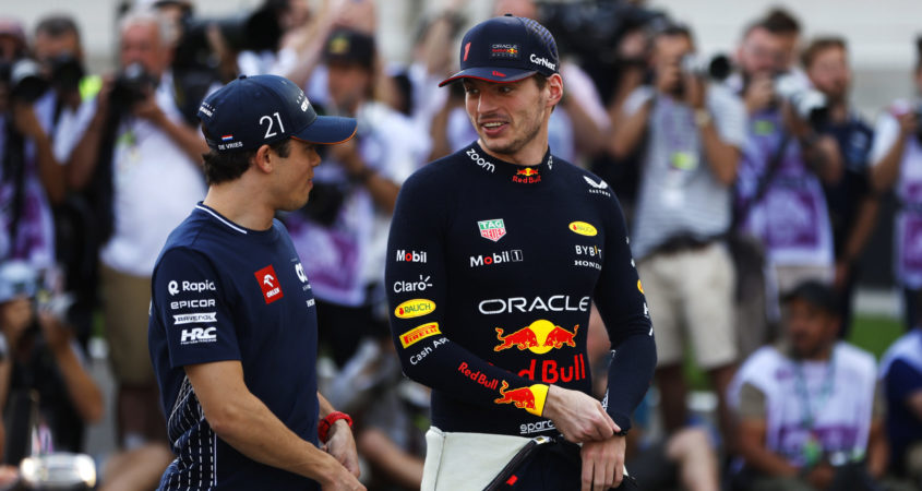 Max Verstappen en Nyck de Vries hebben veel contact met elkaar, zo vertellen ze in Saoedi-Arabië. “We spreken elkaar op alle mogelijke manieren en platforms”, aldus De Vries. Bekijk hier de interviews met beide coureurs over elkaar.