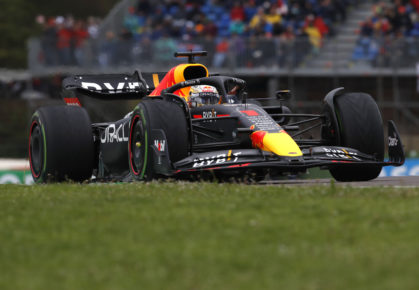 Verstappen verslaat Leclerc in verregende kwalificatie die in anti-climax eindigt