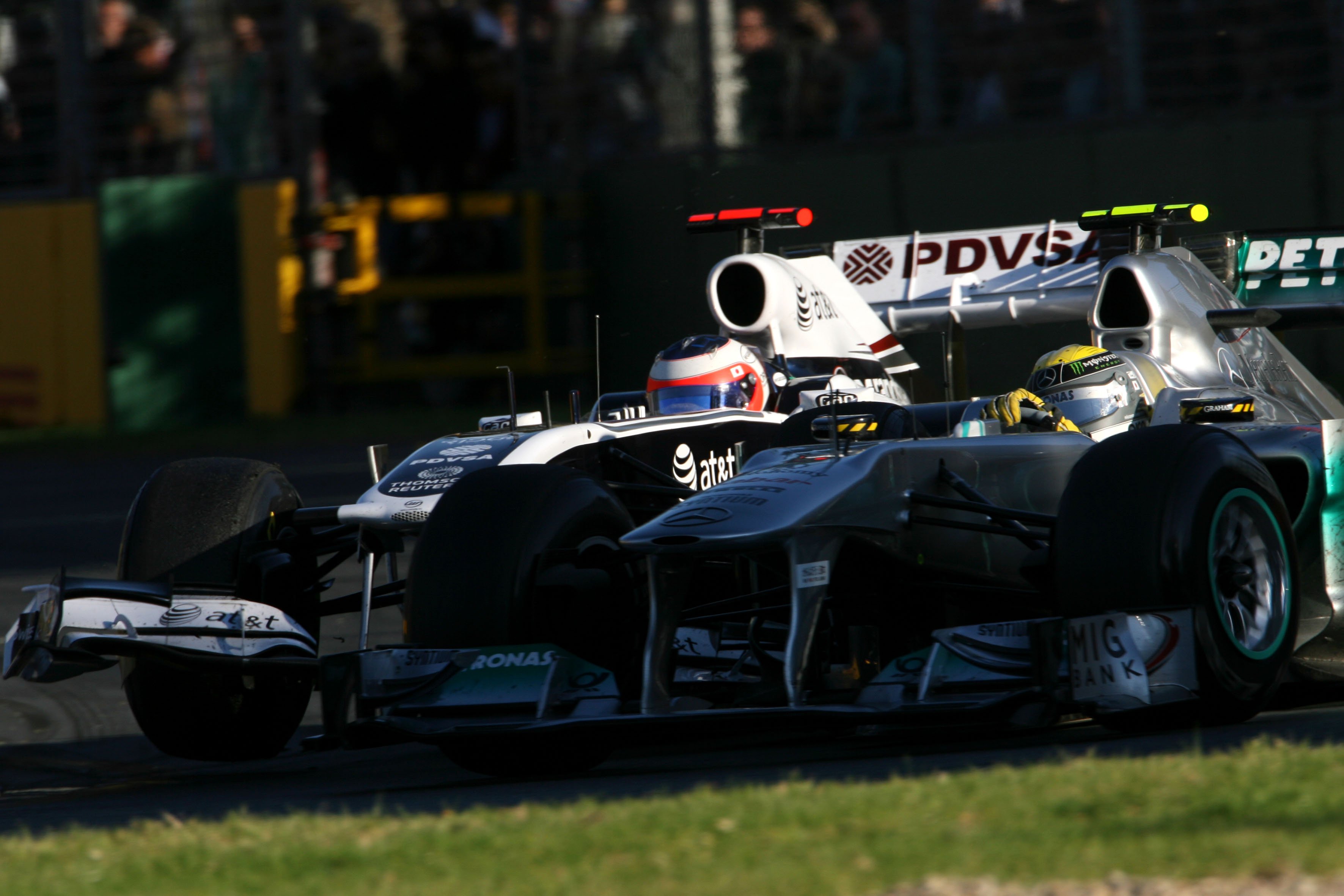 “Ik was helemaal niet van plan hem in te halen: ik verdedigde mijn positie tegenover Kobayashi. Ik denk dat de ene band meer grip bood dan de andere en dat daarom het rempunt per band verschilt. Rosberg remde vroeg en was al in de bocht voordat ik de auto kon stoppen. De FW33 was vandaag competitief, dus dat is een positief puntje voor de volgende race.”