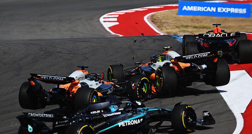 De crash die je wist dat zou komen: eerder dan verwacht komt die er ook. Bij de start van de sprintrace op het Circuit of the Americas komen teamgenoten Lando Norris en Oscar Piastri, de twee voornaamste kanshebbers op de wereldtitel, met elkaar in botsing. Einde verhaal derhalve, waardoor winnaar Max Verstappen de WK-achterstand op het duo verder kan verkleinen.