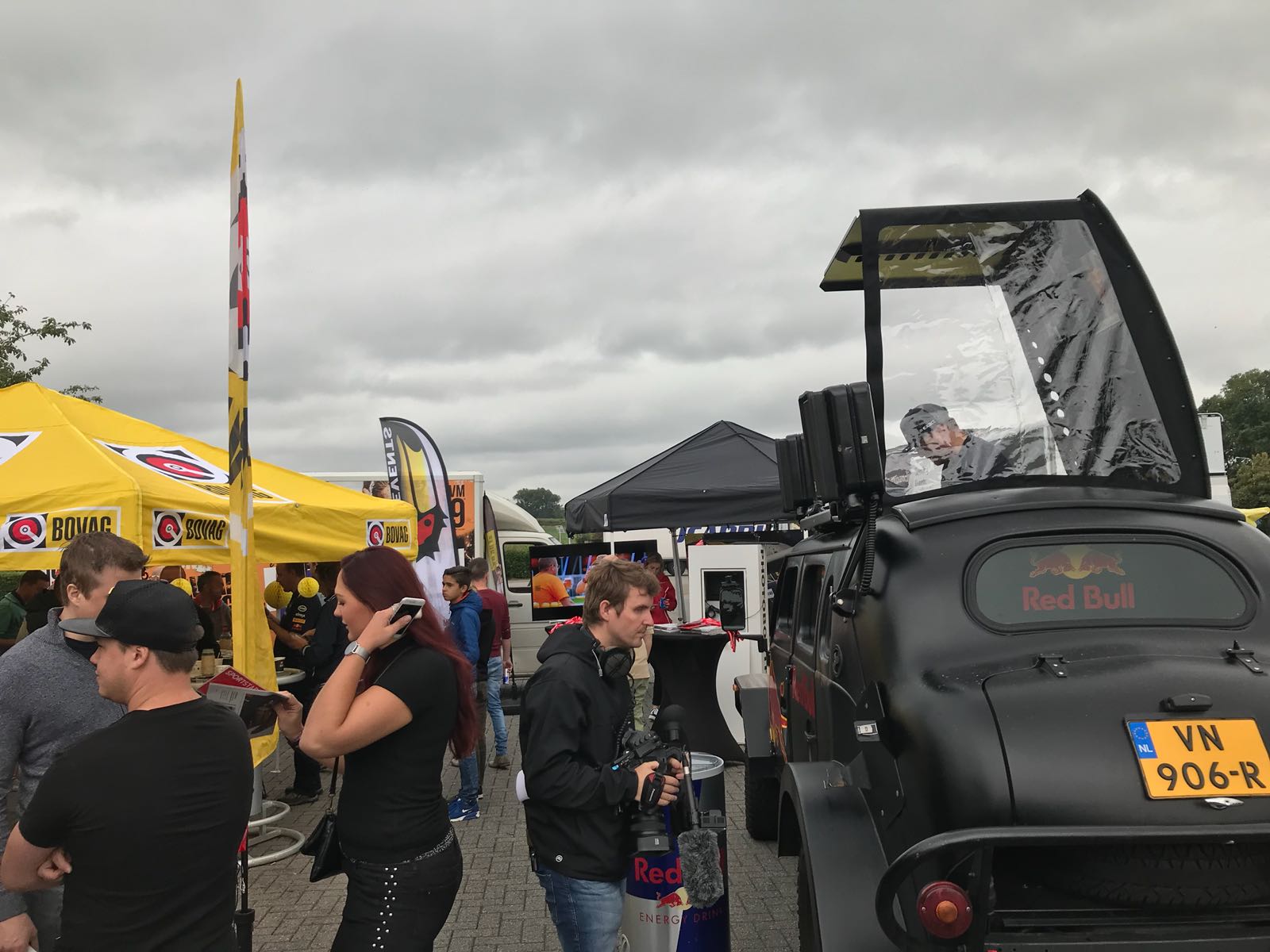 Red Bull zorgde voor de nodige energie, niet alleen door blikjes uit de delen, maar ook met een dj die voor een leuke sfeer zorgde op de laatste parkeerplaats voor de Belgische grens. Jumbo zorgde voor koffie en cake en ook de exemplaren van FORMULE 1 gingen als zoetje broodjes over de toonbank.