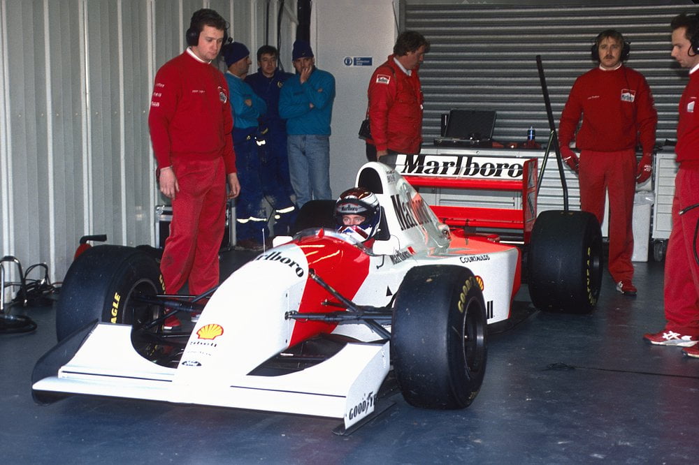 De jonge Nederlander was op dat moment hot property in de Formule 1. Kampioen in de Duitse Formule 3, winnaar van de Marlboro Masters en een imponerende test bij Footwork: het zorgde voor een hype. En hij kreeg dus een uitnodiging van McLaren voor een test, Van Egmond bedacht zich niet: “Ik moest daar bij zijn, ik was daar voor Autovisie met collega Rob Wiedenhoff. Met de auto op de veerboot en op naar Silverstone. We hadden al gehoord dat de sessie besloten zou zijn dus we hadden een trap en een betonschaar bij ons.”