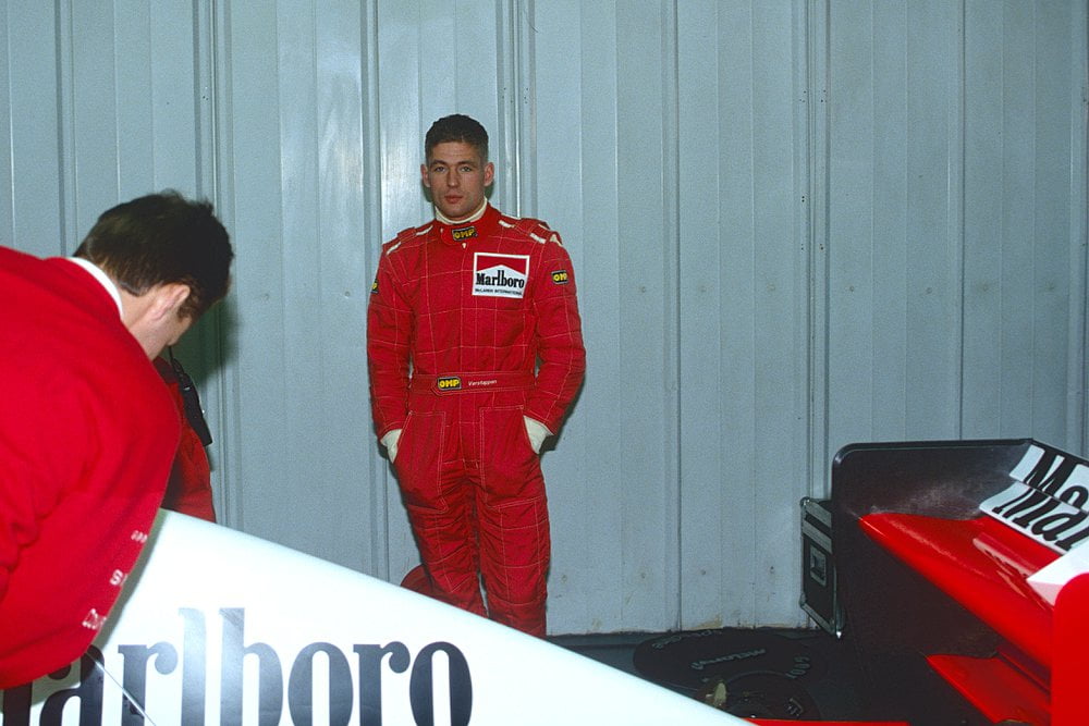 Het blijft een mooi beeld, de iconische helm van Jos Verstappen in de iconische rood-witte auto van McLaren. In 1993 mocht Verstappen een dag in de auto testen op Silverstone. Het zijn foto’s die bijna niet naar buiten waren gekomen, fotograaf Peter van Egmond sloop naar binnen maar dat werd hem niet in dank afgenomen door de Engelsen.