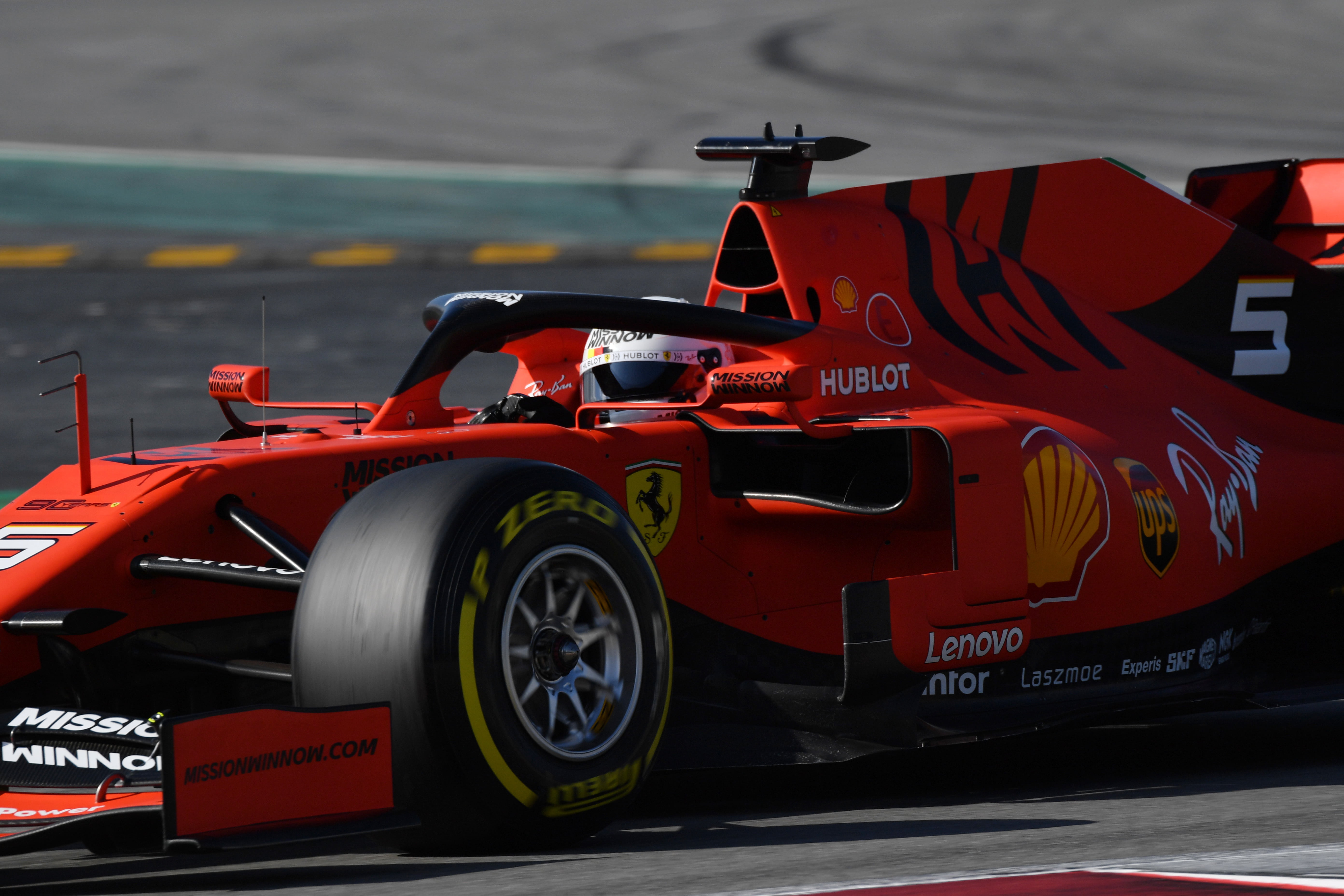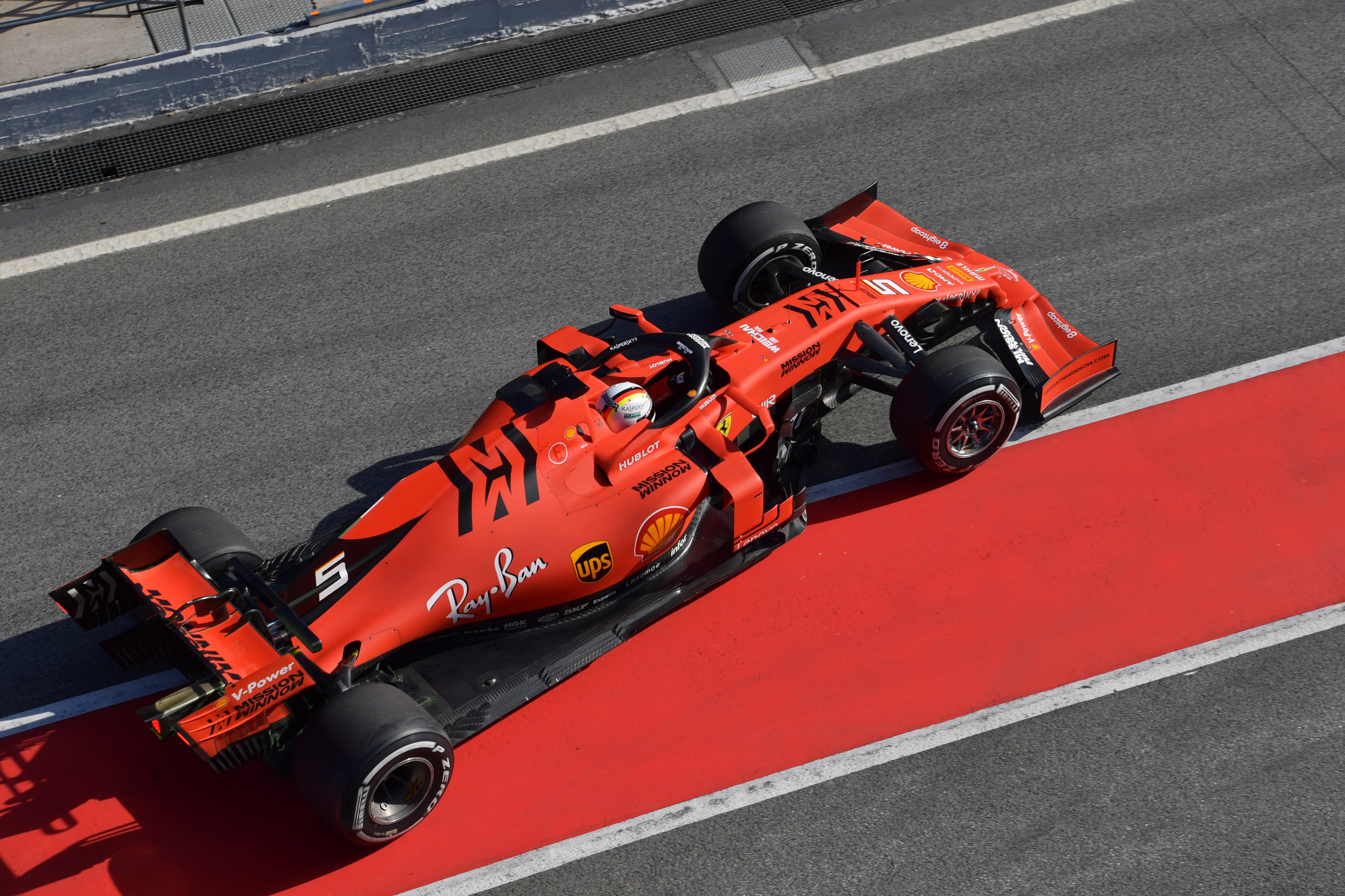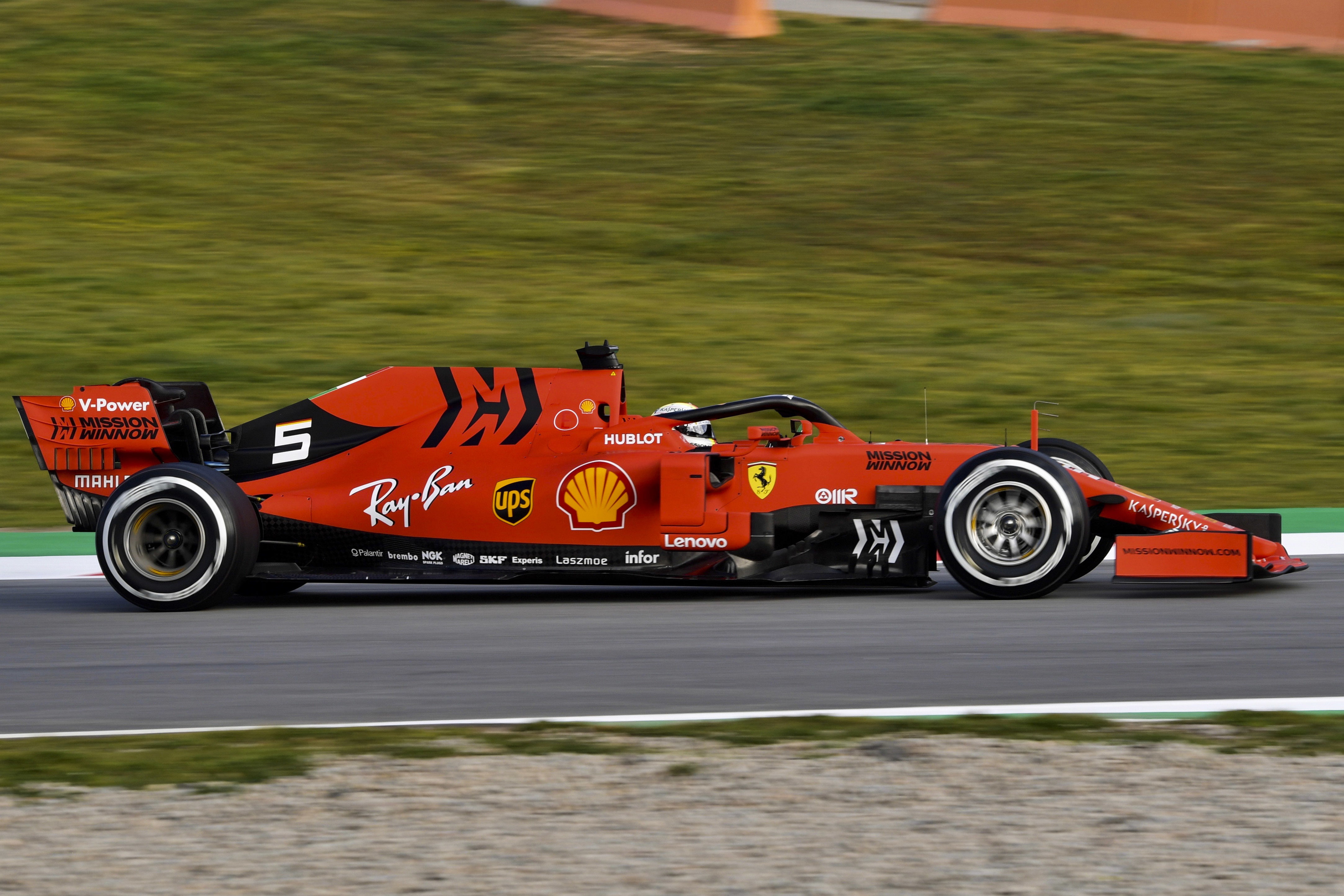 CIRCUIT DE BARCELONA-CATALUNYA, SPAIN – FEBRUARY 18: Sebastian Vettel, Ferrari SF90, carries sensor equipment during the Barcelona February testing at Circuit de Barcelona-Catalunya on February 18, 2019 in Circuit de Barcelona-Catalunya, Spain. (Photo by Jerry Andre / Sutton Images)