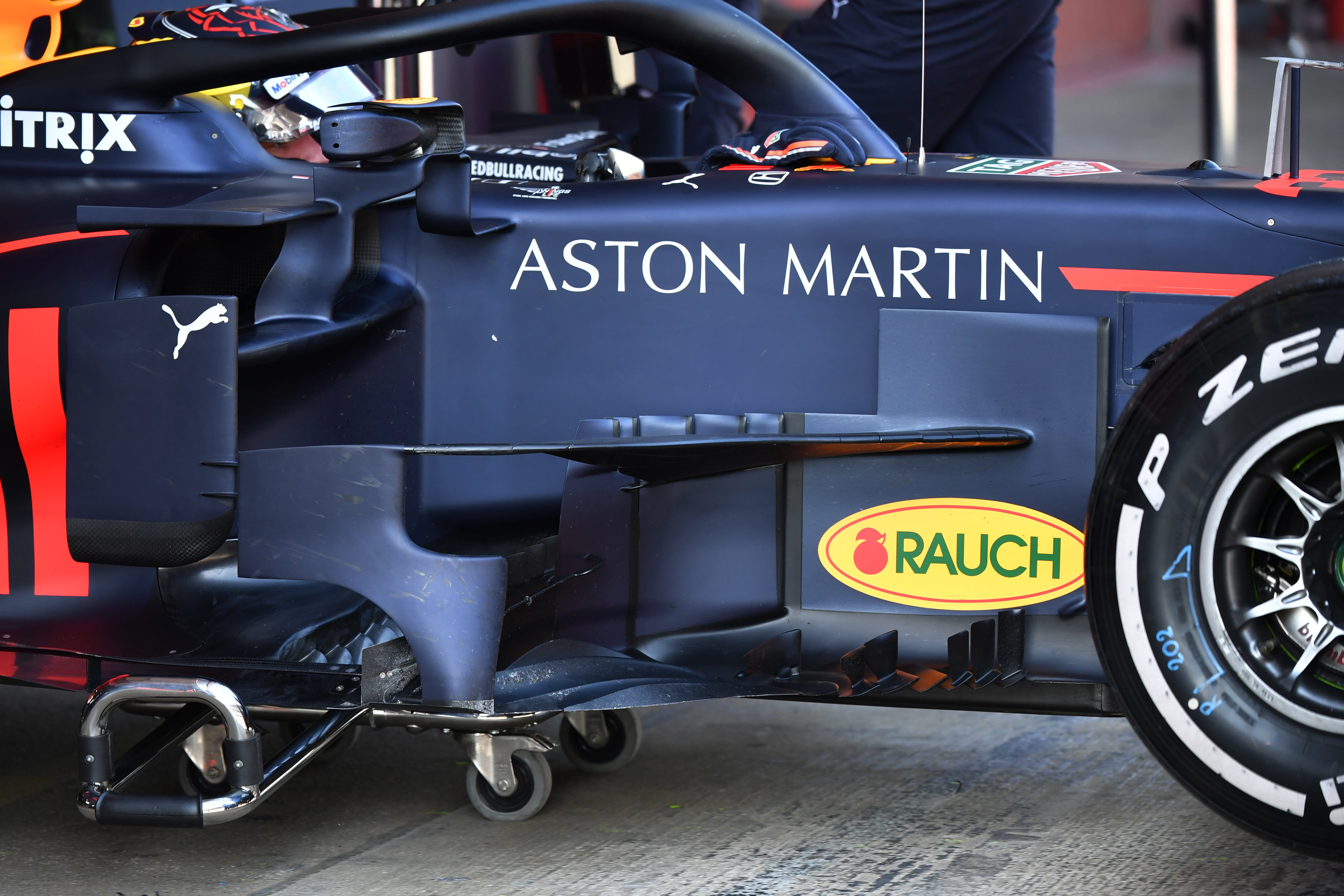 CIRCUIT DE BARCELONA-CATALUNYA, SPAIN – FEBRUARY 18: Red Bull Racing RB15 bargeboards during the Barcelona February testing at Circuit de Barcelona-Catalunya on February 18, 2019 in Circuit de Barcelona-Catalunya, Spain. (Photo by Mark Sutton / Sutton Images)