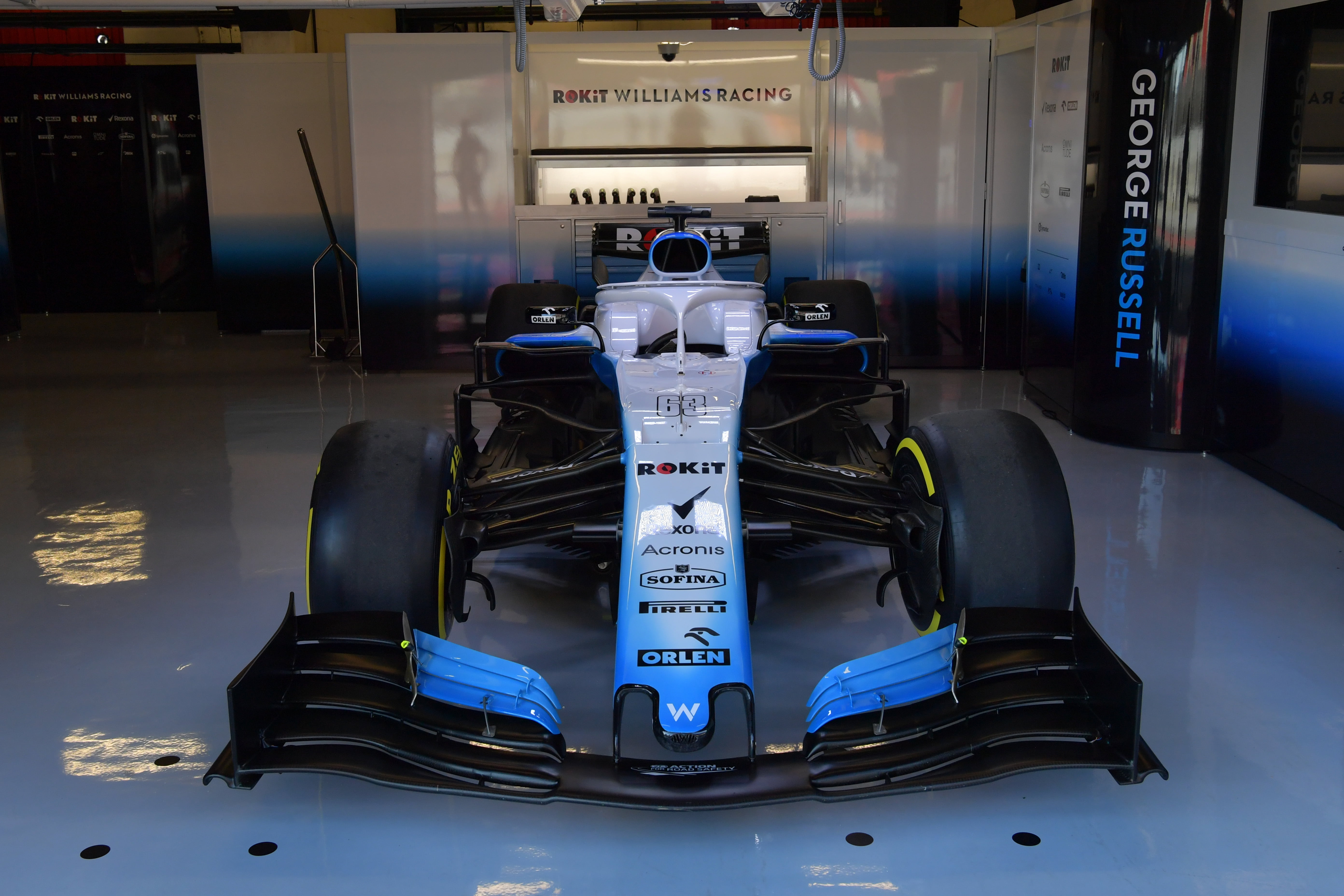 CIRCUIT DE BARCELONA-CATALUNYA, SPAIN – FEBRUARY 18: Williams Racing garage during the Barcelona February testing at Circuit de Barcelona-Catalunya on February 18, 2019 in Circuit de Barcelona-Catalunya, Spain. (Photo by Jerry Andre / Sutton Images)