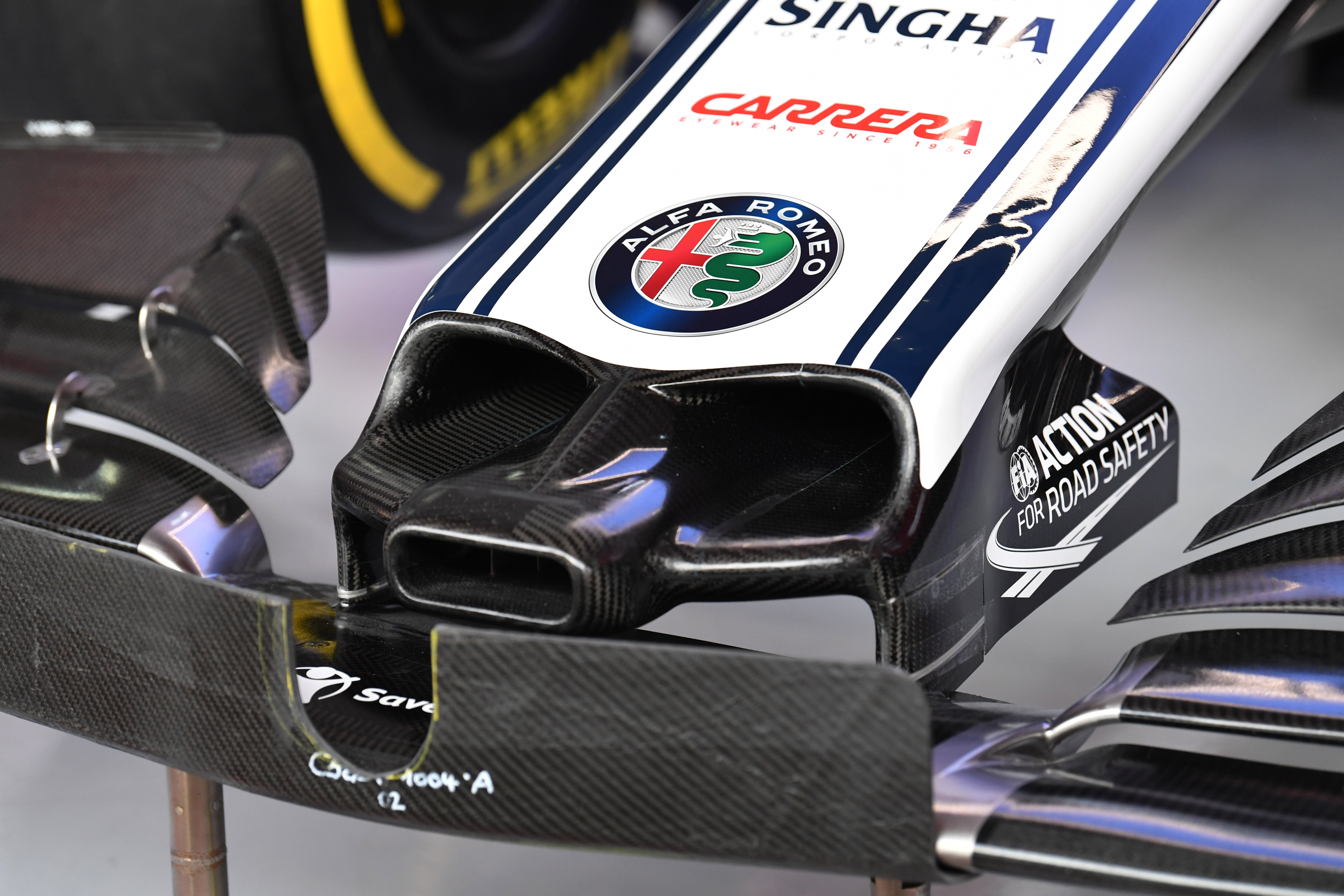 CIRCUIT DE BARCELONA-CATALUNYA, SPAIN – FEBRUARY 18: The new Alfa Romeo Racing C38 nose during the Pre-season Test at Circuit de Barcelona-Catalunya on February 18, 2019 in Circuit de Barcelona-Catalunya, Spain. (Photo by Mark Sutton / Sutton Images)