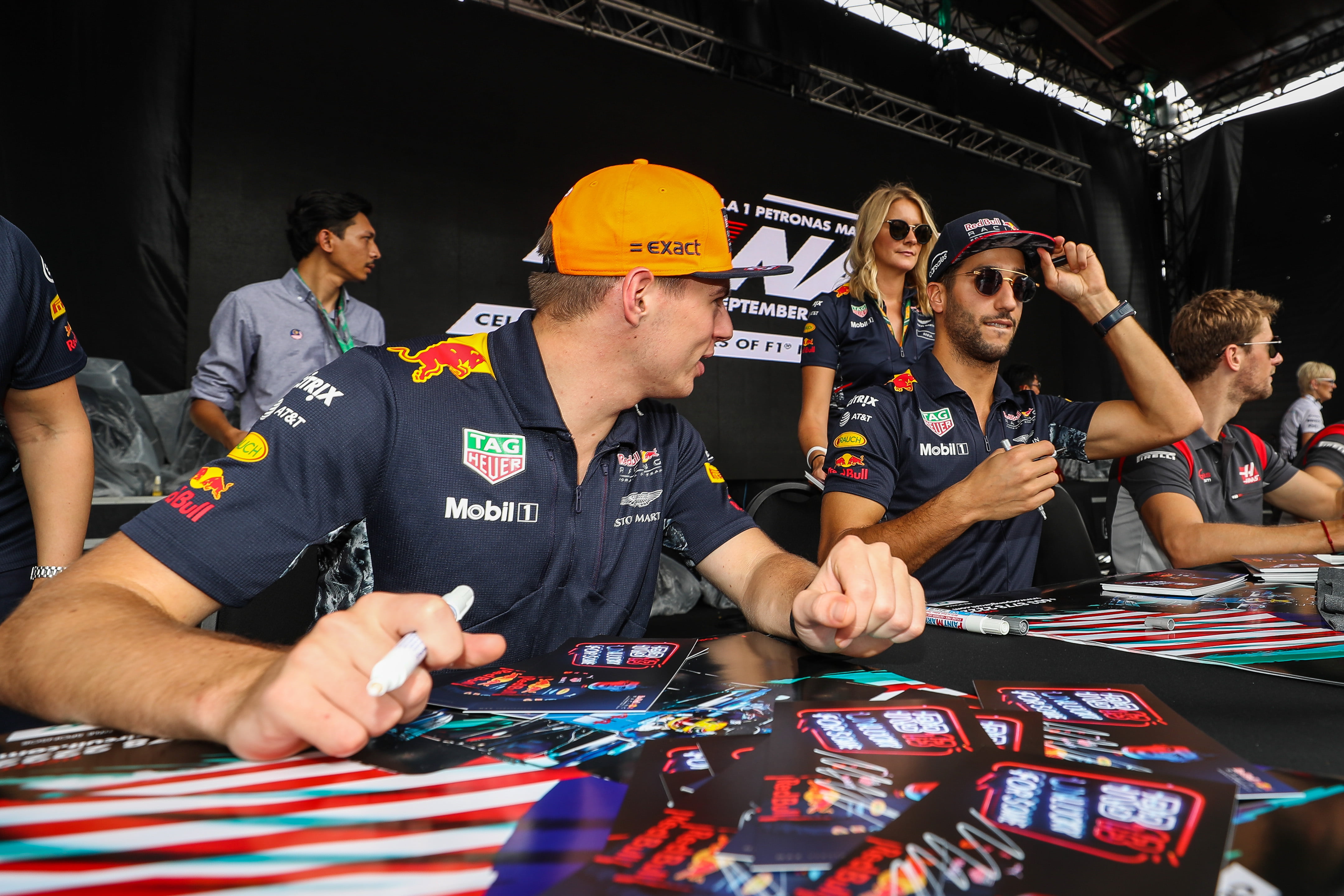 - Geinen met Ricciardo tijdens de handtekeningensessie.