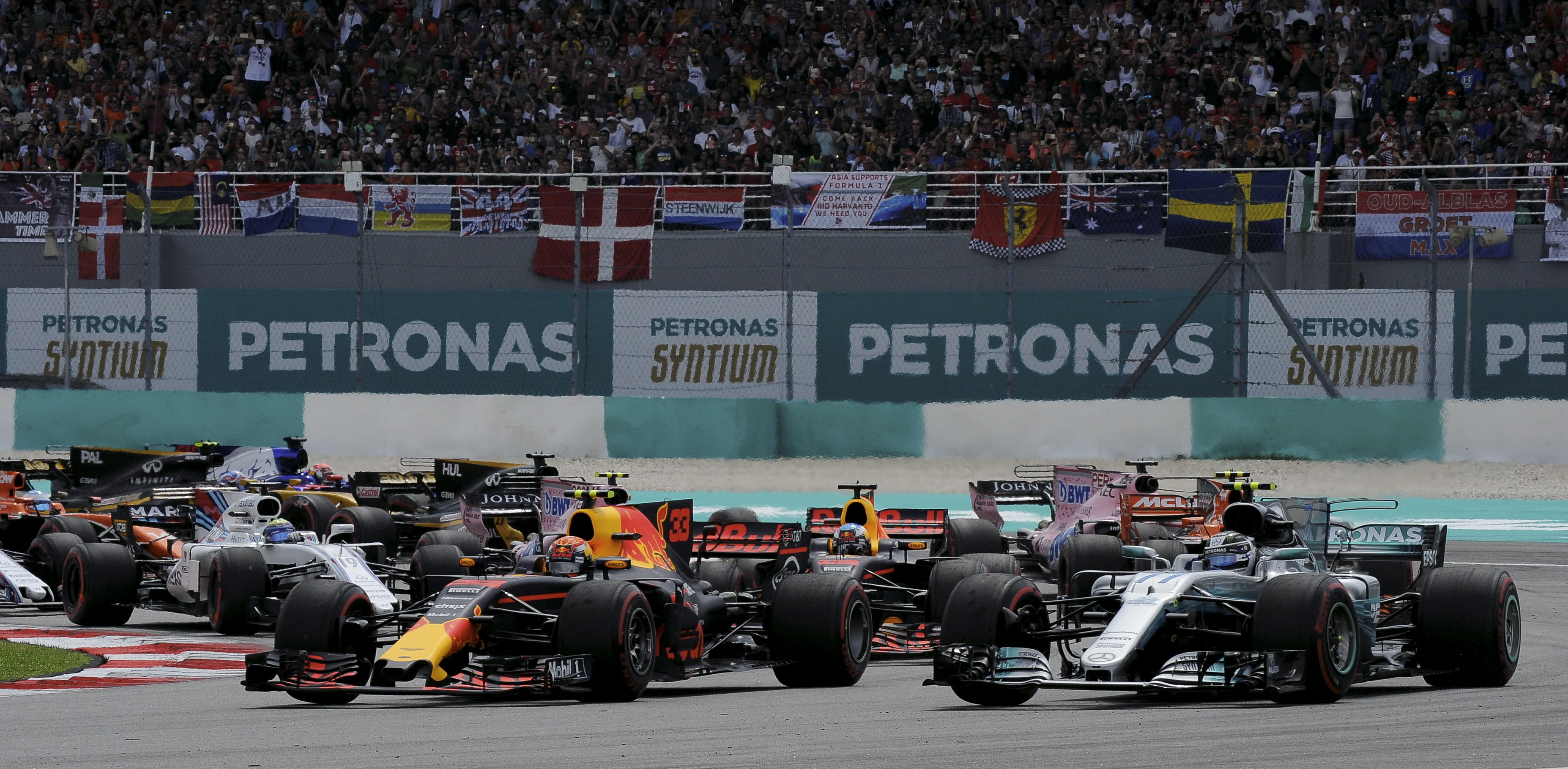 - Verstappen weerstaat de aanval van Bottas bij de start.