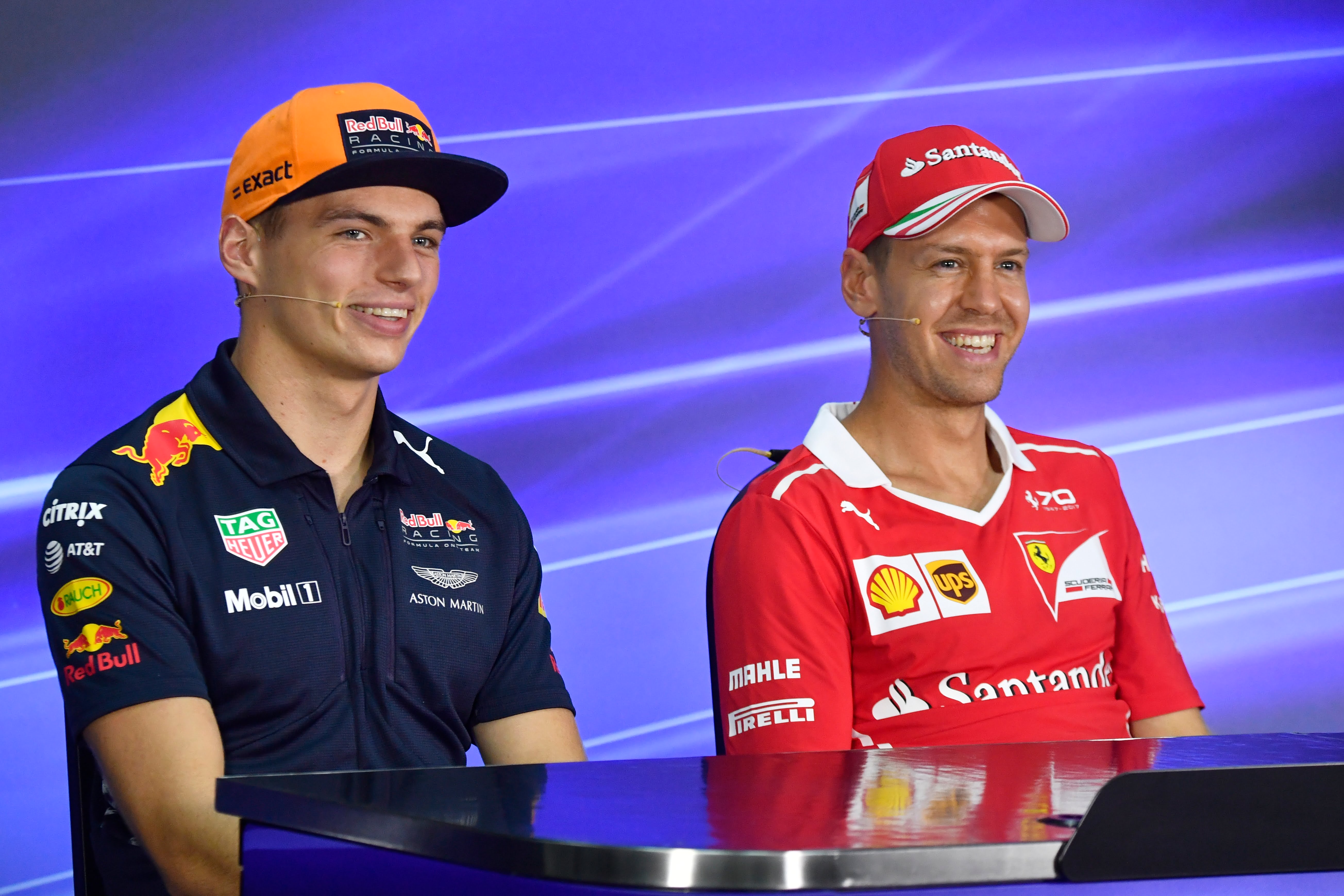 - Het startincident in Singapore is water onder de brug, tijdens de persconferentie op donderdag kunnen Verstappen en Vettel weer lachen.