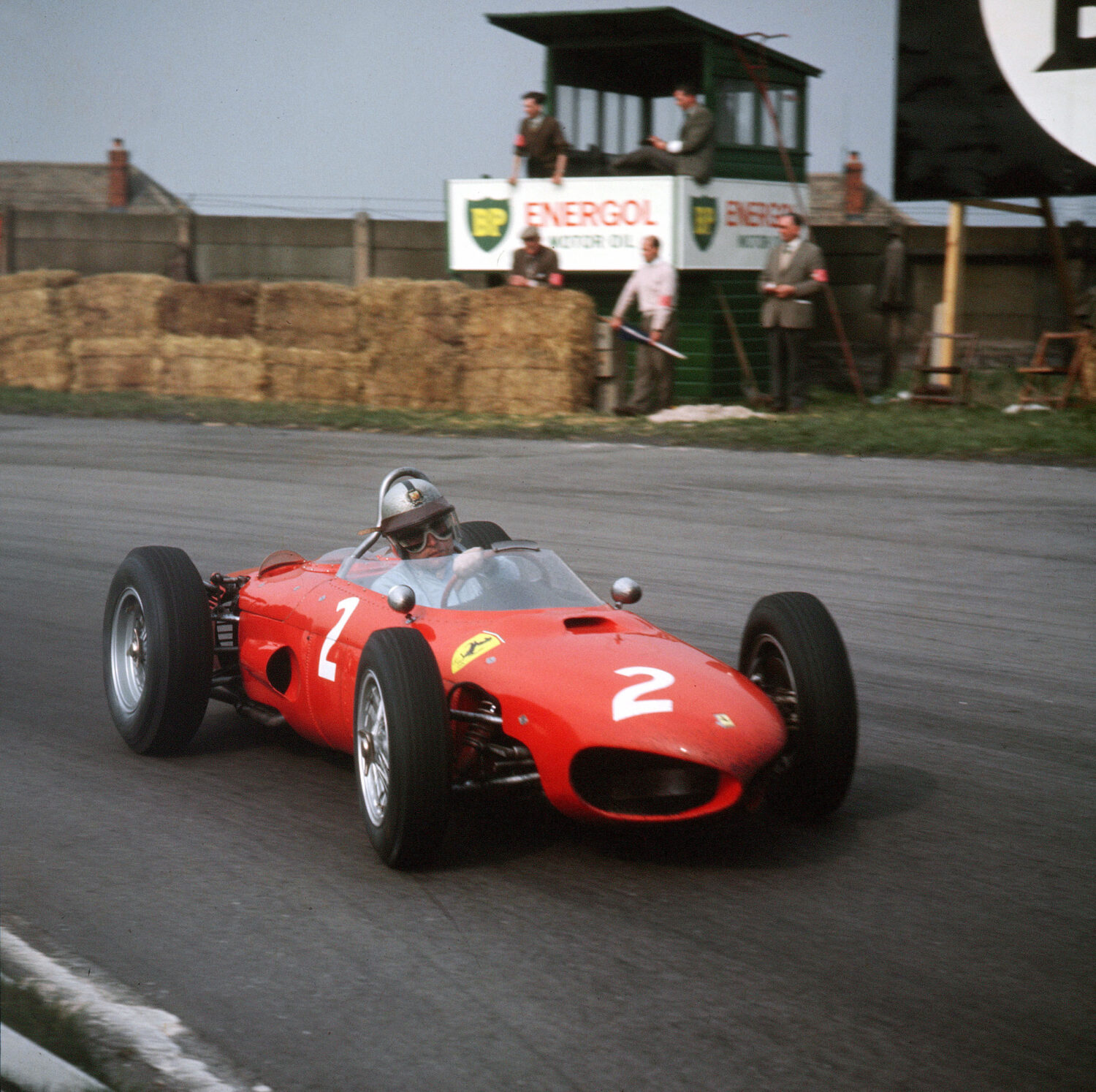 Het constructeurskampioenschap wordt in 1958 toegevoegd aan de Formule 1 en in 1962 wint Ferrari deze titel voor de eerste keer. Hier Giancarlo Baghetti in actie in de Ferrari Dino 156, ook wel bekend als de ‘Sharknose’. (Motorsport Images)