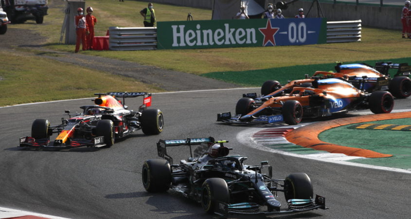 Dat de sprint voor een dergelijk interessant scenario voor de zondag zorgde, is te danken aan de McLarens. Hun werden al meteen duidelijk bij het verwijderen van de bandenwarmers. Zowel Lando Norris als Daniel Ricciardo startten beiden op de snellere softs tegen mediums voor Bottas, Hamilton en Verstappen.