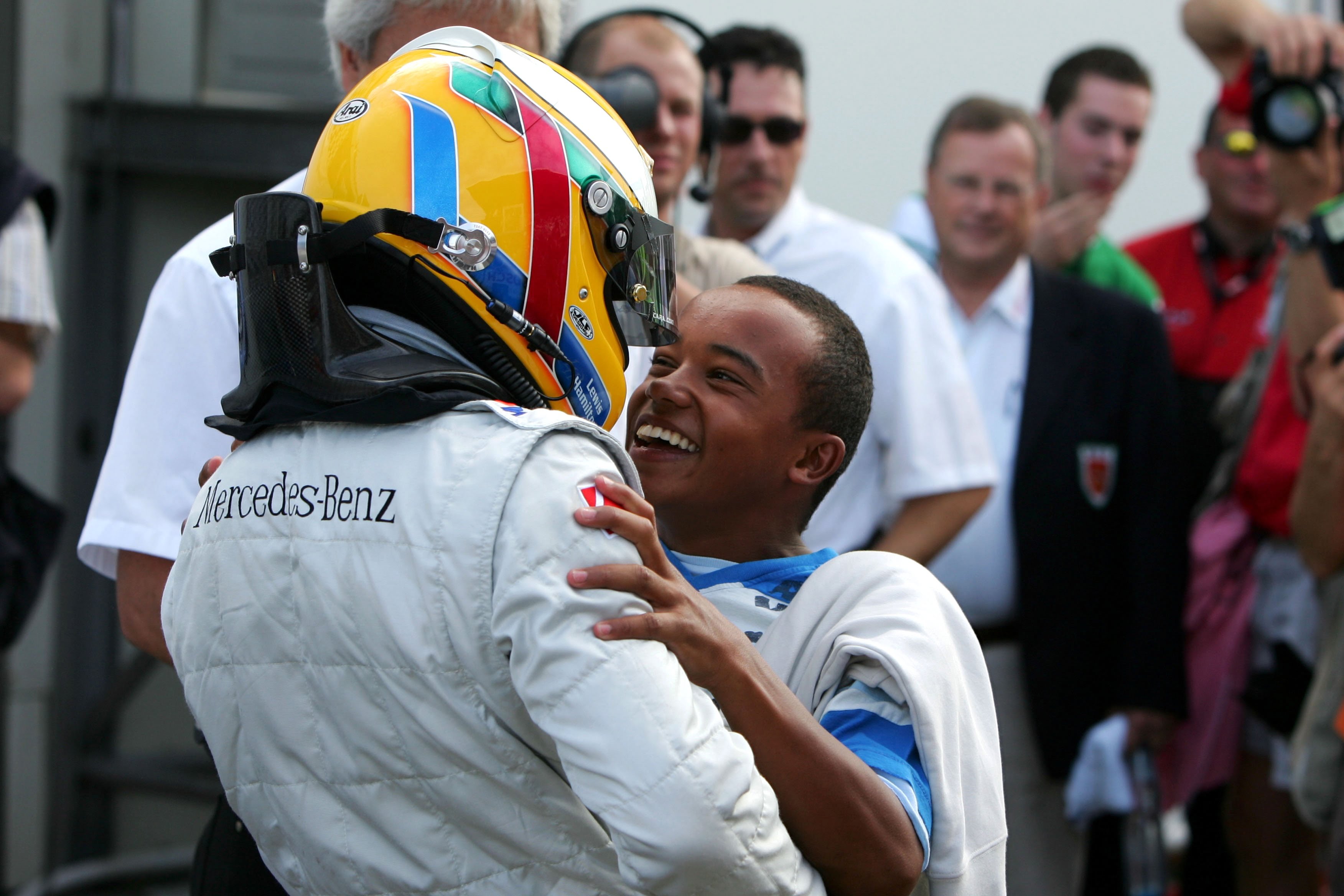 Lewis Hamilton (GBR), ASM Formule 3, Dallara F305 Mercedes, secured the 2005 championship by winning the race, here being congratulated by his brother, Nick Hamilton (GBR).