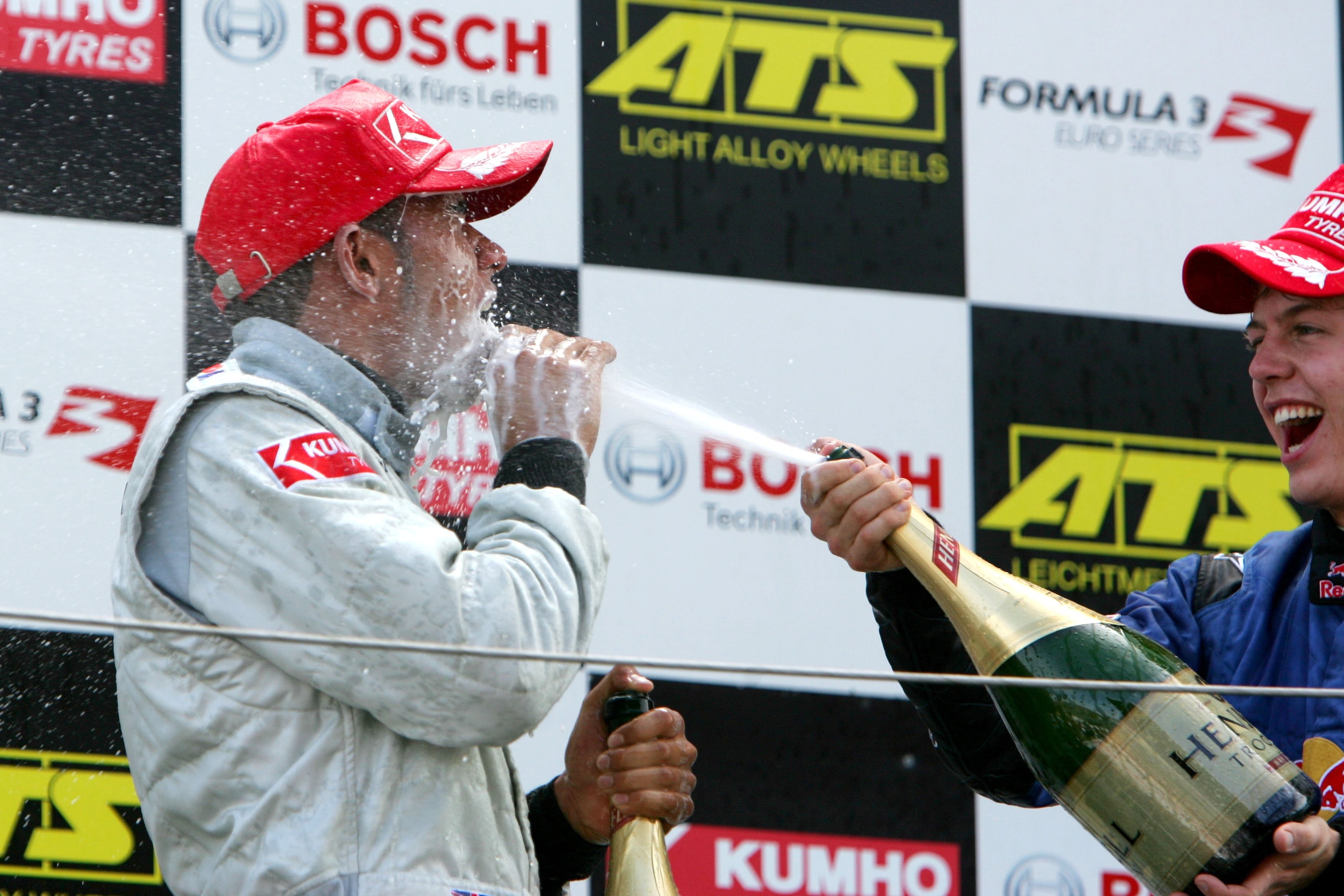 Champion Lewis Hamilton (GBR), ASM Formule 3, Dallara F305 Mercedes (1st, left), gets a champagne shower from Sebastian Vettel (GER), ASL Mucke Motorsport, Dallara F305 Mercedes (2nd, right).