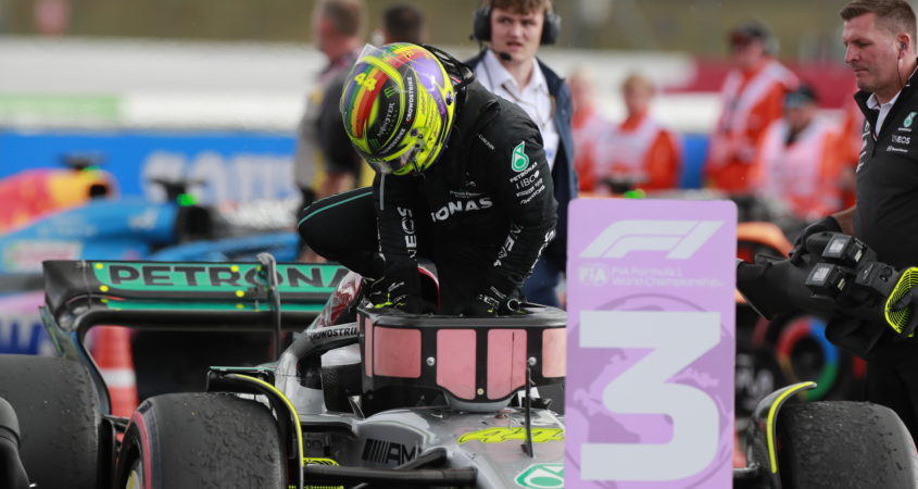 Lewis Hamilton is voor de tweede keer op rij en voor de derde keer dit seizoen op de derde plaats in een Grand Prix geëindigd. De coureur van Mercedes hoefde tijdens de Britse Grand Prix op Silverstone alleen racewinnaar Carlos Sainz en Sergio Pérez voor zich te dulden.