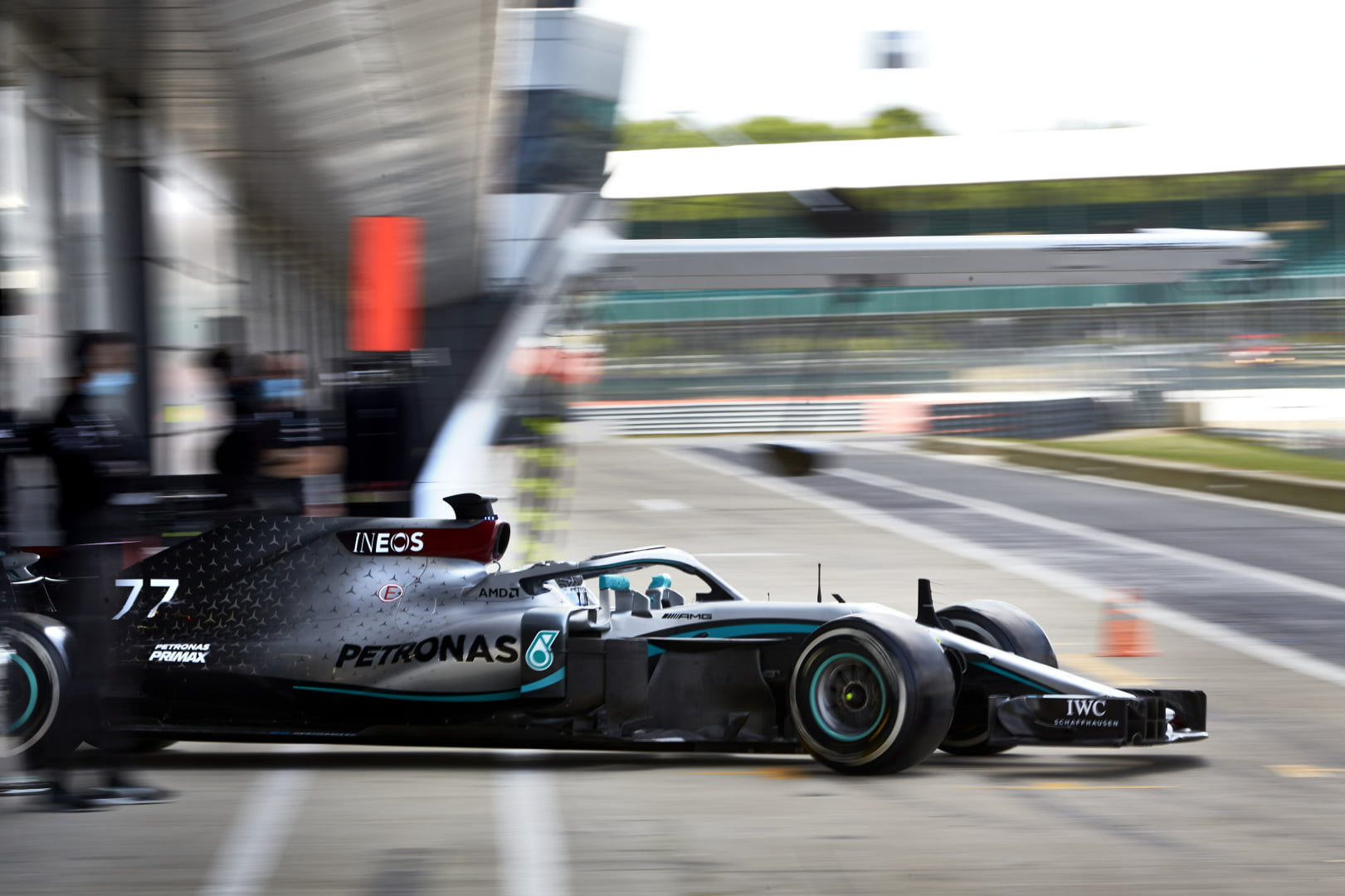 Mondmaskers, face shields en waar mogelijk social distancing. Werken in een pitbox ziet er sinds de coronacrisis heel wat anders uit. Mercedes testte vandaag op Silverstone als eerste team de protocollen die vanaf de Grote Prijs van Oostenrijk van kracht zijn. Valtteri Bottas mocht in de Mercedes W09 uit 2018 stappen om zijn eerste meters sinds de wintertests te maken, morgen is Lewis Hamilton aan de beurt.