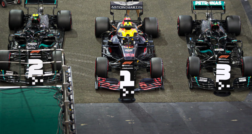 Op de valreep, toch nog een poleposition voor Max Verstappen en dus mocht hij tijdens de persconferentie dan eindelijk plaats nemen in de middelste stoel. Vrijdag grapte hij nog dat hij wel heel vaak in dezelfde stoel heeft gezeten dit jaar. In het allerlaatste Grand Prix-weekend van het seizoen is het hem gelukt de Mercedessen de baas te zijn op zaterdag. Sterker nog, voor het eerst in het hybride tijdperk (sinds 2014) lukt het Mercedes niet de pole te pakken in de oliestaat. Tuurlijk, de superformatie claimt al maanden geleden gestopt te zijn met de doorontwikkeling van de W11. Hoe goed zal die W12 dan wel niet zijn, is dan de volgende vraag maar die bewaren we nog even voor februari volgend jaar. Eerst de race van vandaag. (Tekst gaat verder onder de foto)