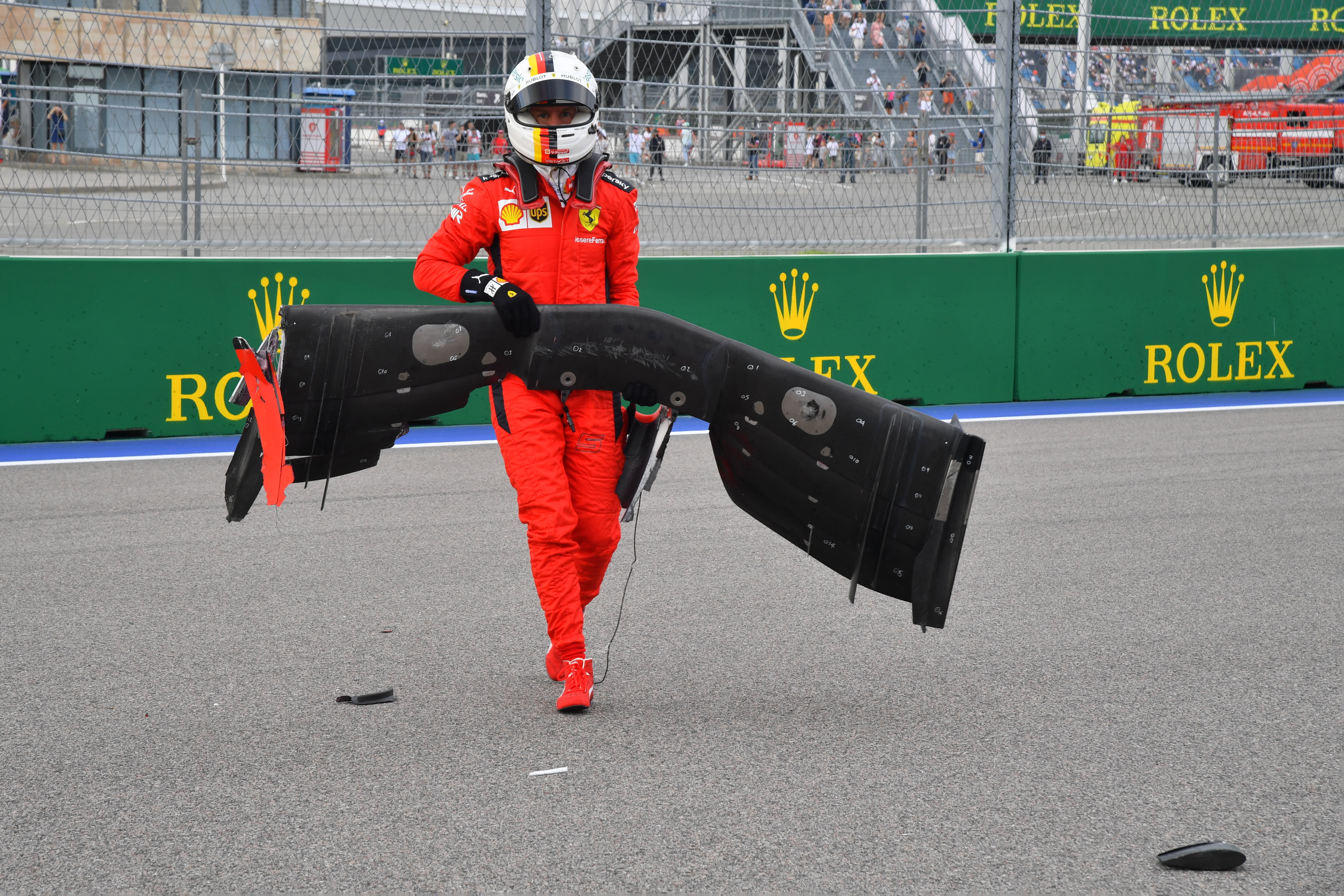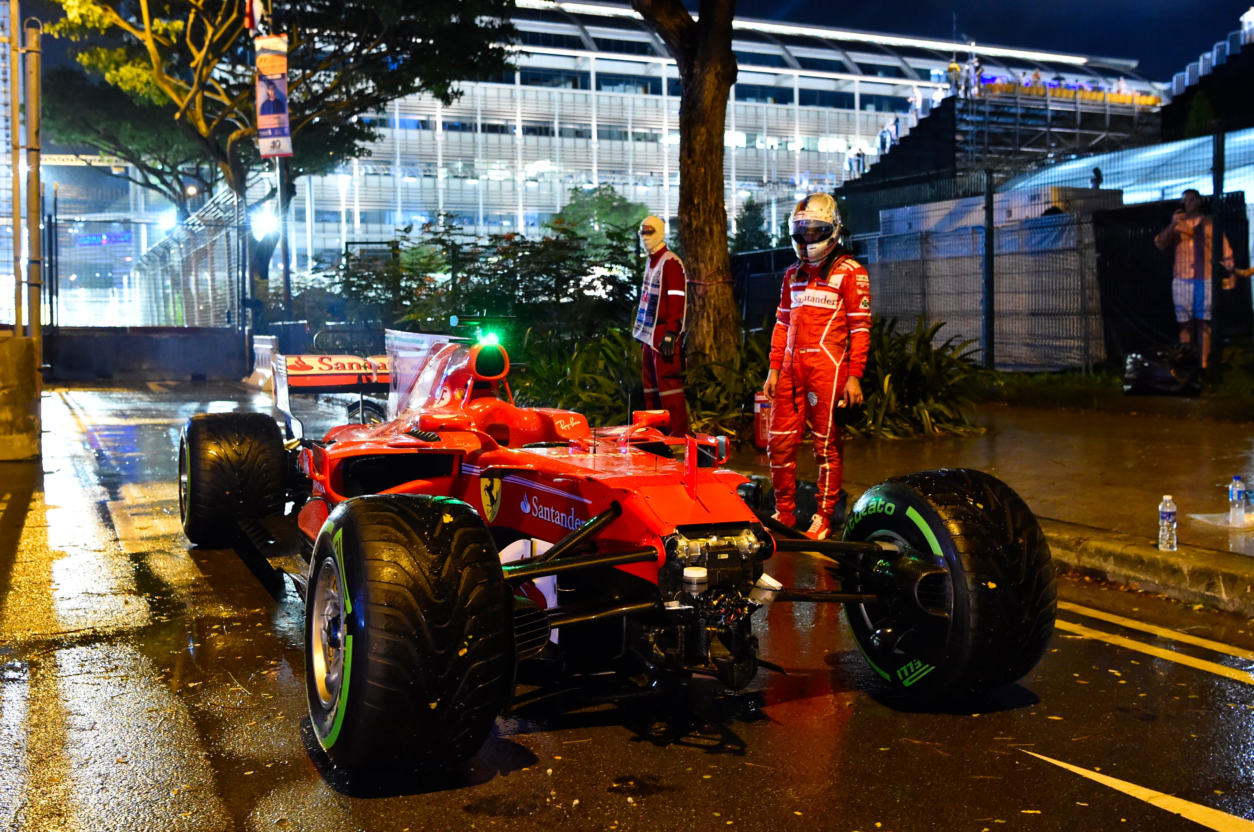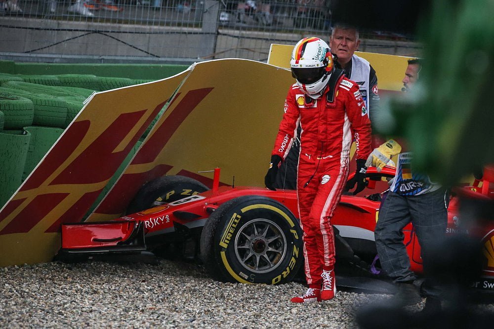 Van Egmond staat wel vaker op de goede plek als Vettel wordt getroffen door onheil. “Ik heb hem in Singapore ook wel eens gefotografeerd na een crash, dat was na de beroemde botsing met Max Verstappen en teamgenoot Kimi Räikkönen.” Van Egmond maakte onderstaande foto van een beteuterde Vettel die naar zijn gestrande auto staat te kijken.