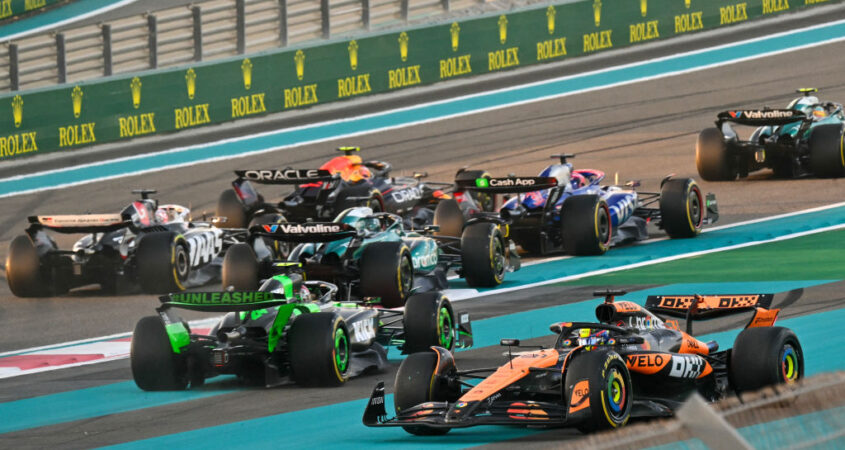 Heb je de start van de Grand Prix van Abu Dhabi gemist? Lando Norris is goed weg en behoudt de leiding. Ook Max Verstappen heeft een goede start maar raakt Oscar Piastri in het gevecht om de tweede positie. Ze vallen beide ver terug. Sergio Pérez heeft later in de ronde een moment en valt daardoor uit. Een korte laatste race voor hem. Bekijk hier een video van de allerlaatste start van het Formule 1-seizoen.