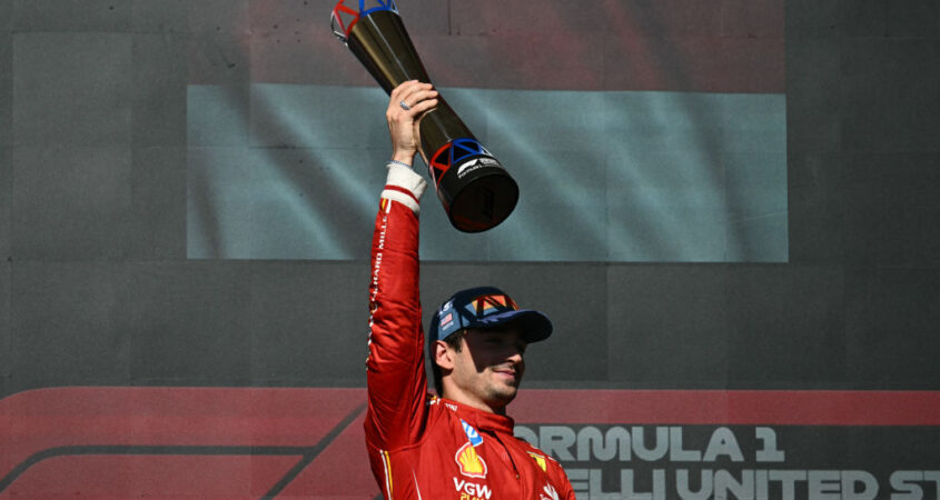 Heb je de race van de Grand Prix van de Verenigde Staten gemist? Ferrari was deze zondag ijzersterk en eindigde dit weekend met een 1-2. Charles Leclerc behaalde de overwinning, gevolgd door teamgenoot Carlos Sainz. Max Verstappen was hard in gevecht met Lando Norris om P3. Uiteindelijk wist de Nederlander zijn plaats te behouden dankzij een tijdstraf voor Norris. Bekijk hier een video met de hoogtepunten van de race in Austin.