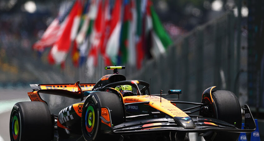 Lando Norris heeft zijn vorm van de laatste GP in Mexico meegenomen naar Brazilië, zo lijkt het. De Britse kampioenschapsleider maakt een ferm openingsstatement bij de eerste en enige vrije training van de GP São Paulo. Max Verstappen daarentegen stapt allerminst tevreden uit zijn bolide.