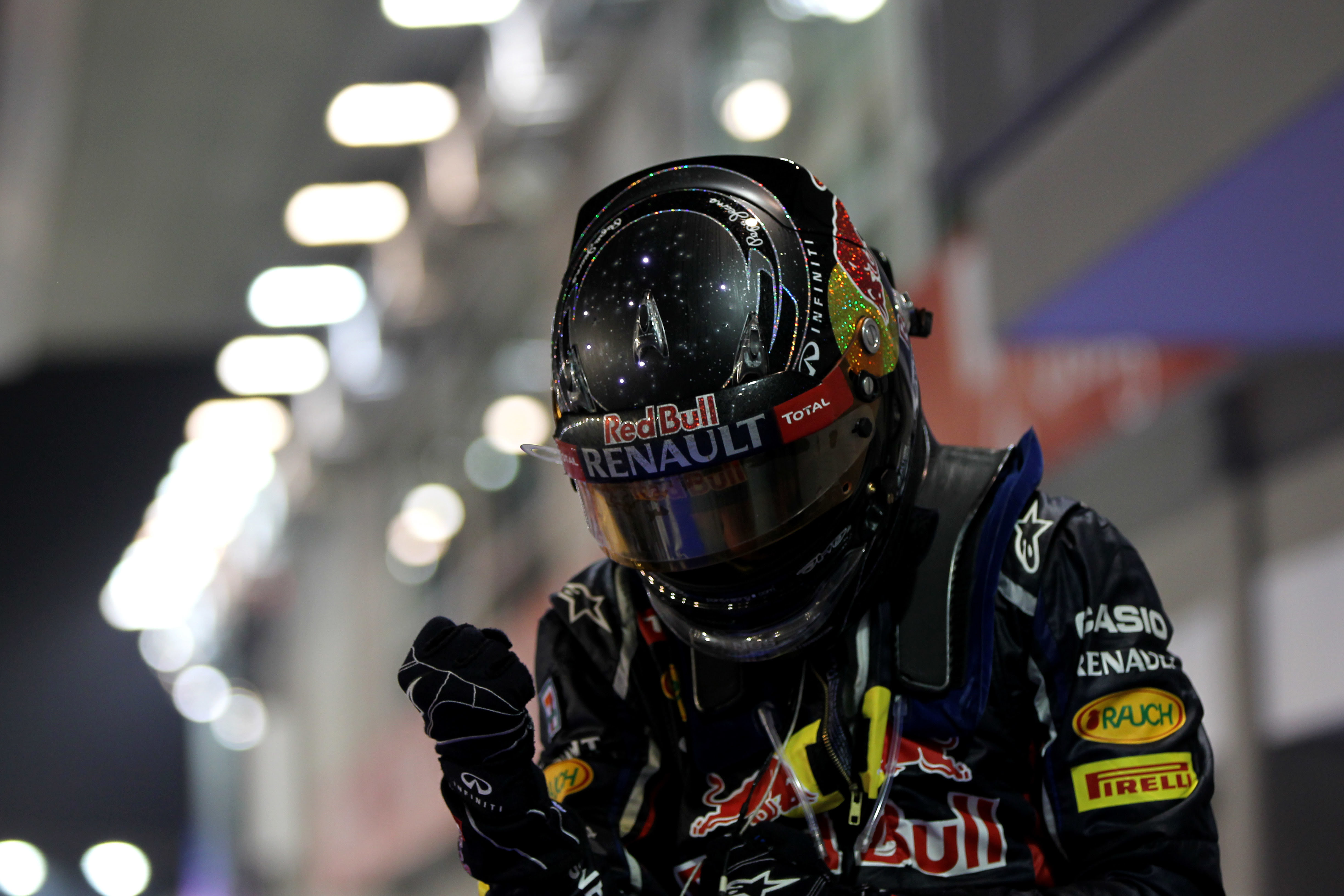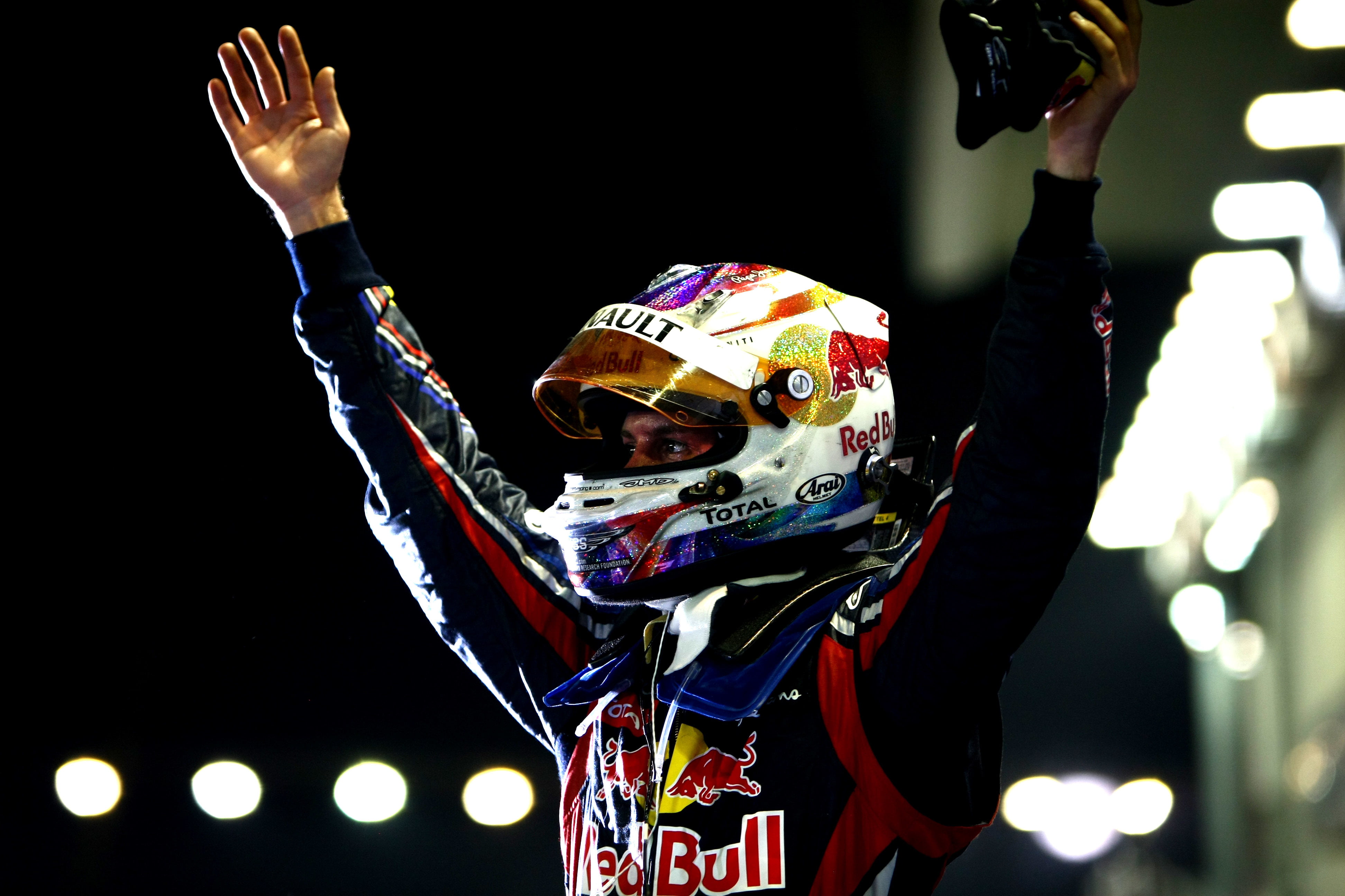 - Marina Bay Circuit, Singapore. 25th September 2011. Sebastian Vettel, Red Bull Racing RB7 Renault, 1st position, celebrates victory in Parc Ferme. Portrait. Helmets. Finish. World Copyright: Andy Hone/LAT Photographic ref: Digital Image CSP28765