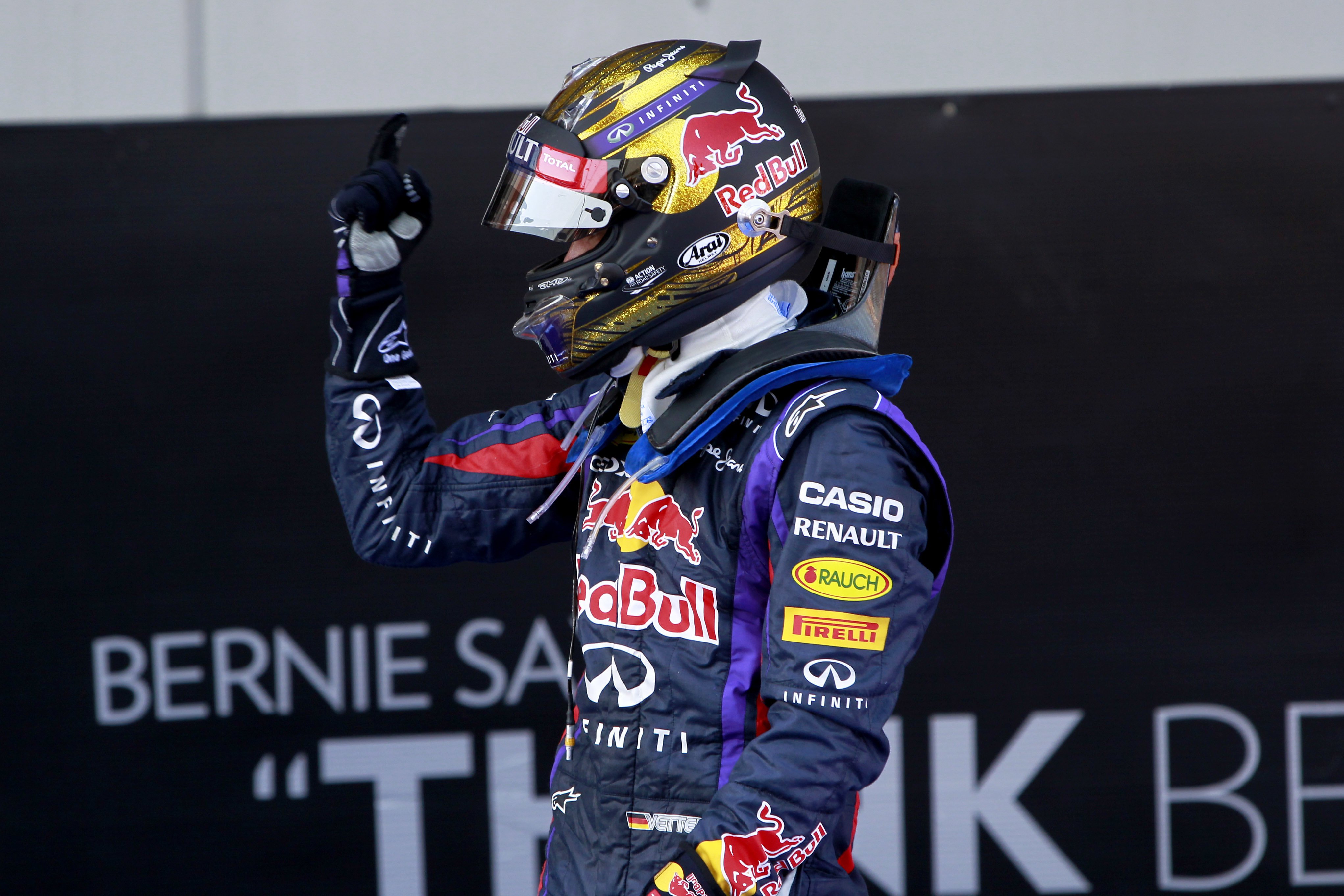 - Nurburgring, Germany 7th July 2013 Sebastian Vettel, Red Bull Racing, 1st position, celebrates victory on arrival in Parc Ferme World Copyright: Glenn Dunbar/LAT Photographic ref: Digital Image _G7C4871