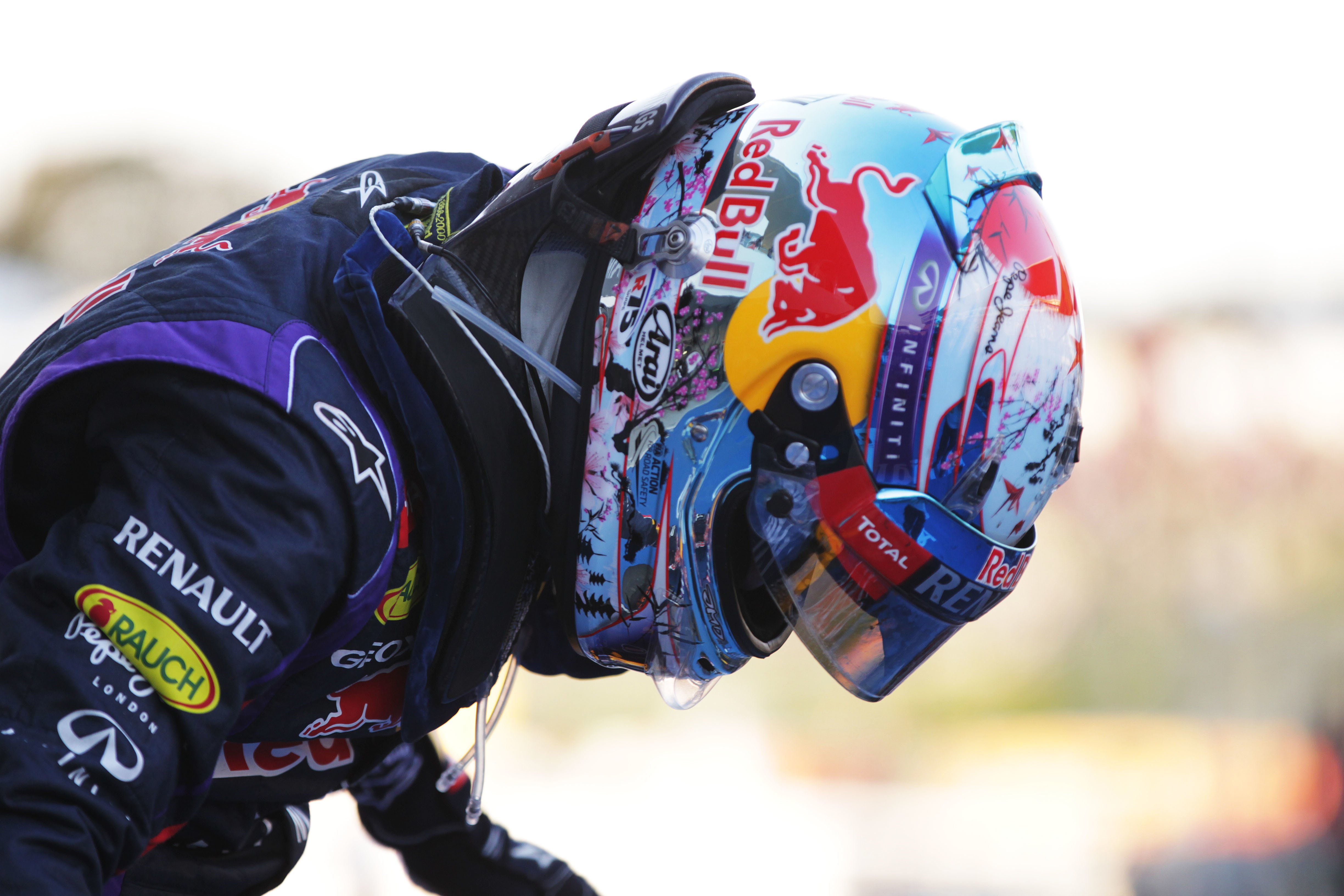 - Suzuka Circuit, Suzuka, Japan. Sunday 13th October 2013. Sebastian Vettel, Red Bull RB9 Renault, 1st position, arrives in Parc Ferme. World Copyright: Andy Hone/LAT Photographic ref: Digital Image HONY5681