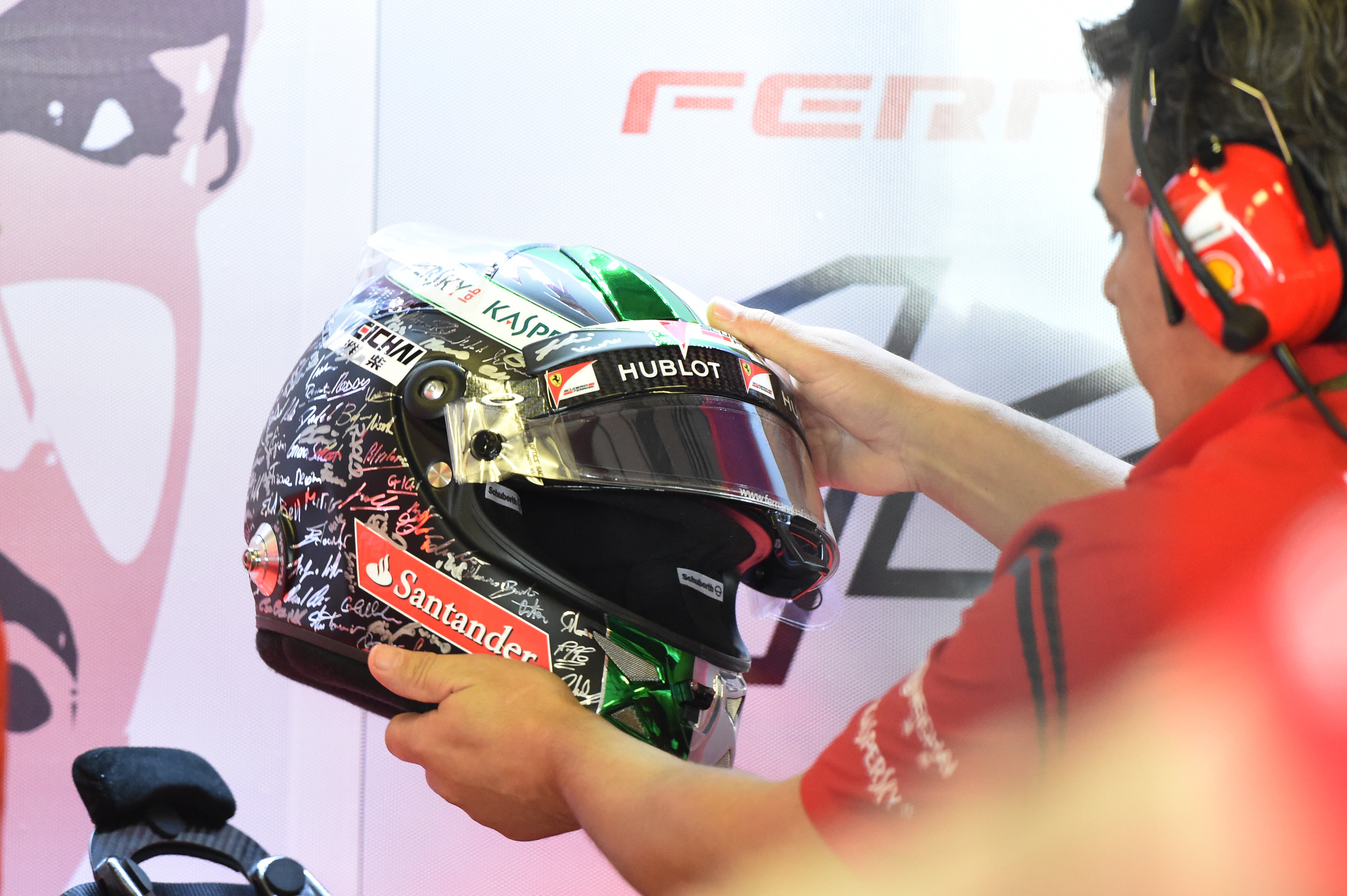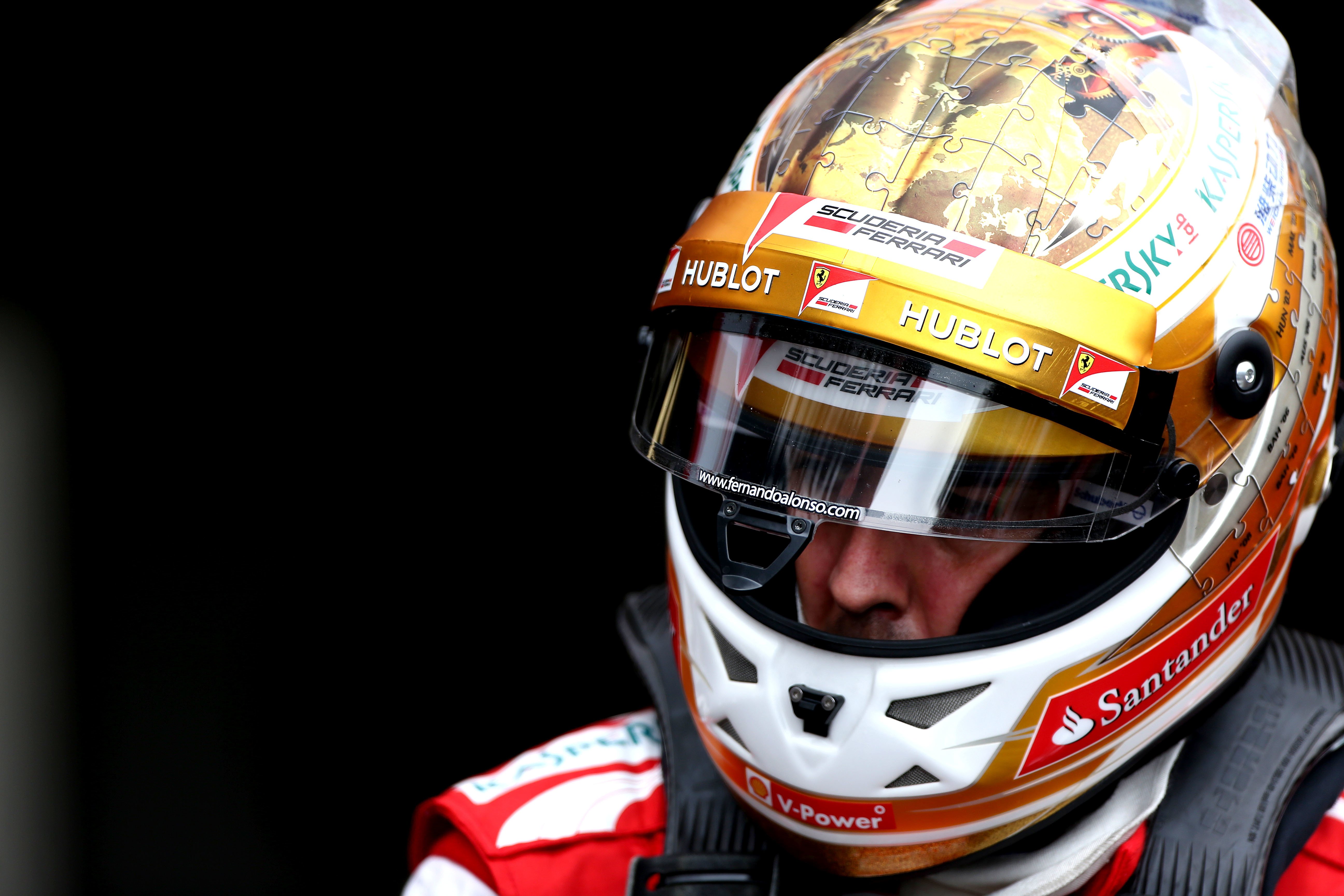 - the helmet of Fernando Alonso (ESP) Ferrari. Formula One World Championship, Rd19, Abu Dhabi Grand Prix, Practice, Yas Marina Circuit, Abu Dhabi, UAE, Friday 21 November 2014.
