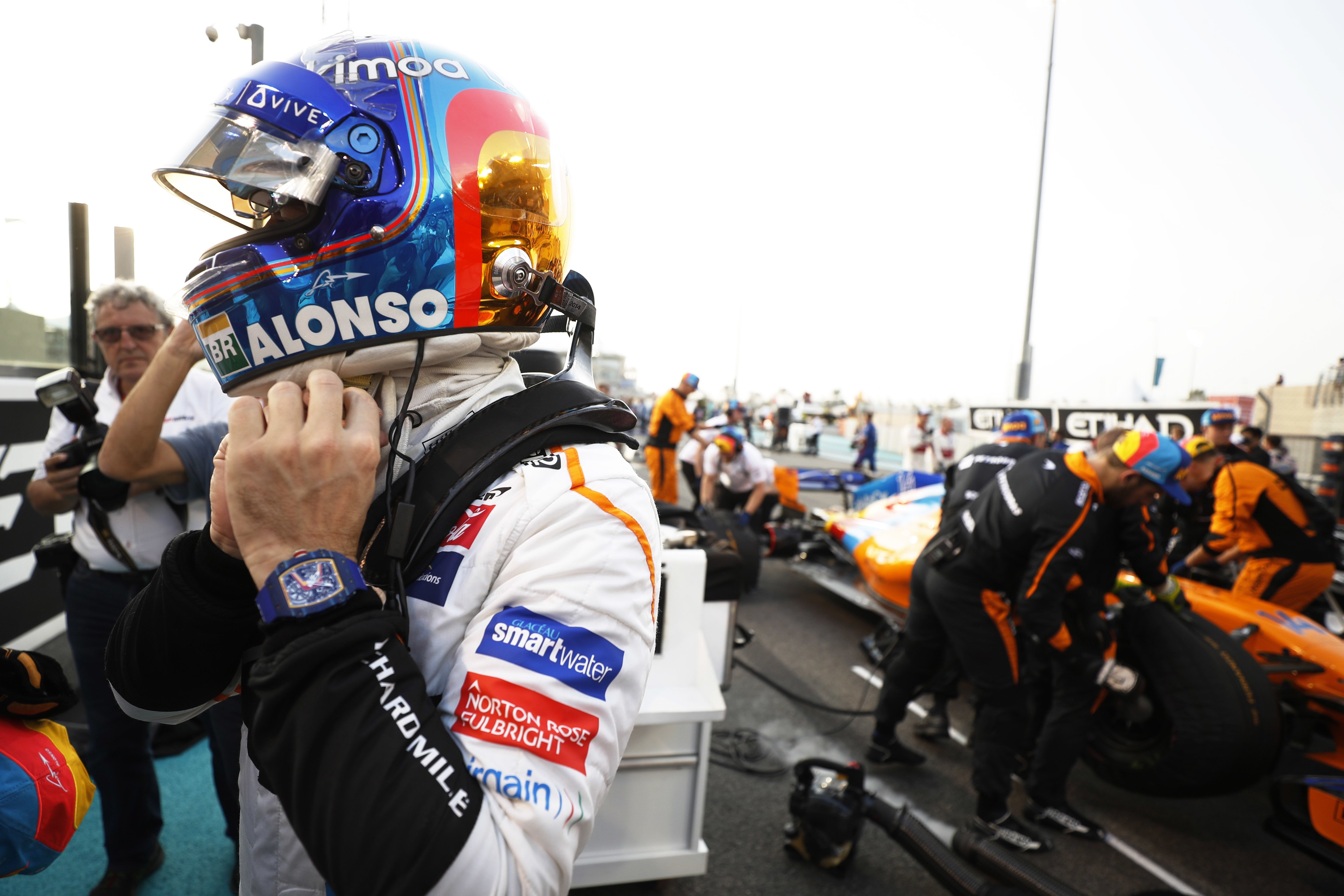 - YAS MARINA CIRCUIT, UNITED ARAB EMIRATES – NOVEMBER 25: Fernando Alonso, McLaren MCL33, on the grid during the Abu Dhabi GP at Yas Marina Circuit on November 25, 2018 in Yas Marina Circuit, United Arab Emirates. (Photo by Steven Tee / LAT Images)