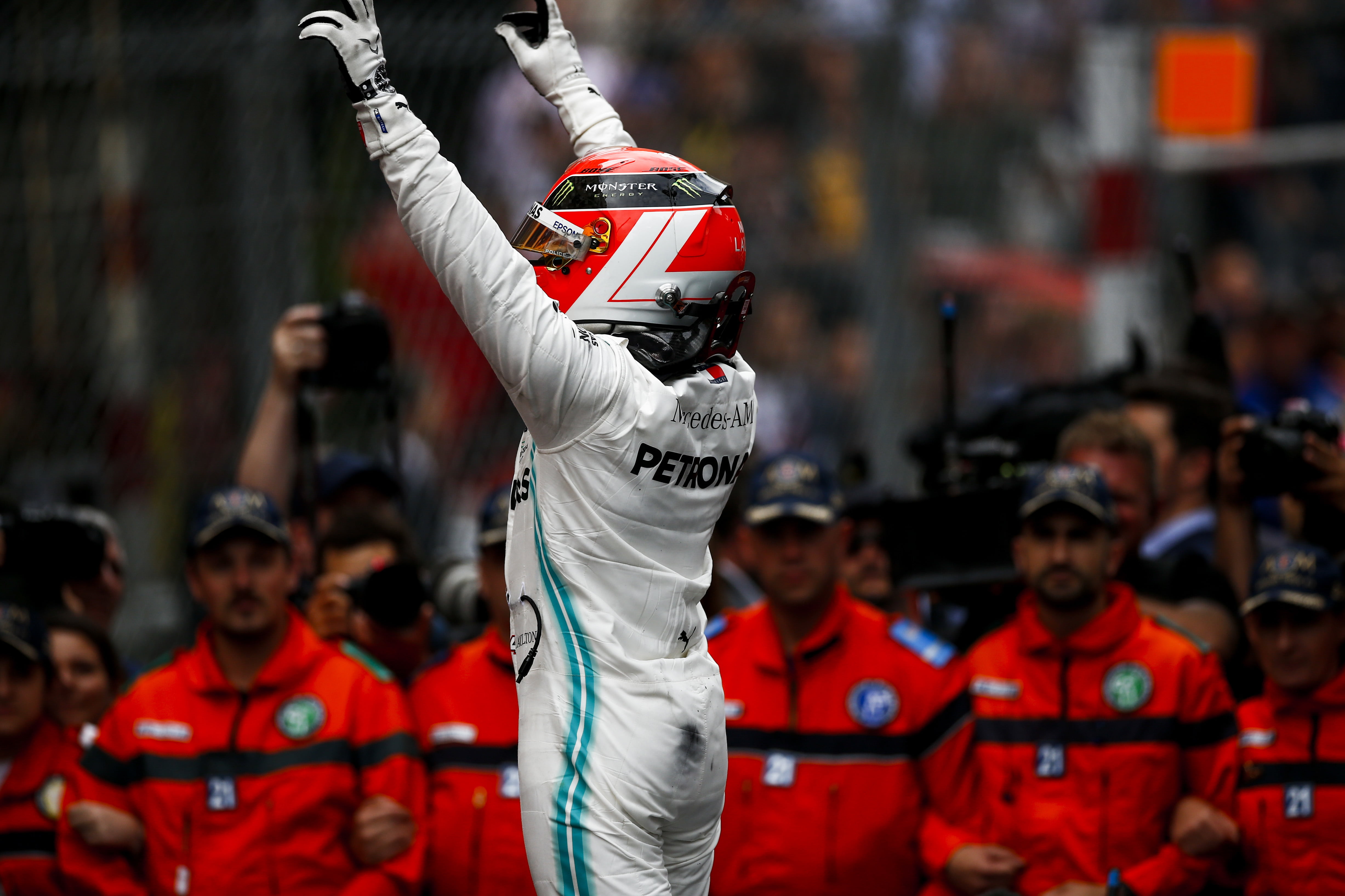 - MONTE CARLO, MONACO – MAY 26: Race Winner Lewis Hamilton, Mercedes AMG F1 celebrates in Parc Ferme during the Monaco GP at Monte Carlo on May 26, 2019 in Monte Carlo, Monaco. (Photo by Glenn Dunbar / LAT Images)