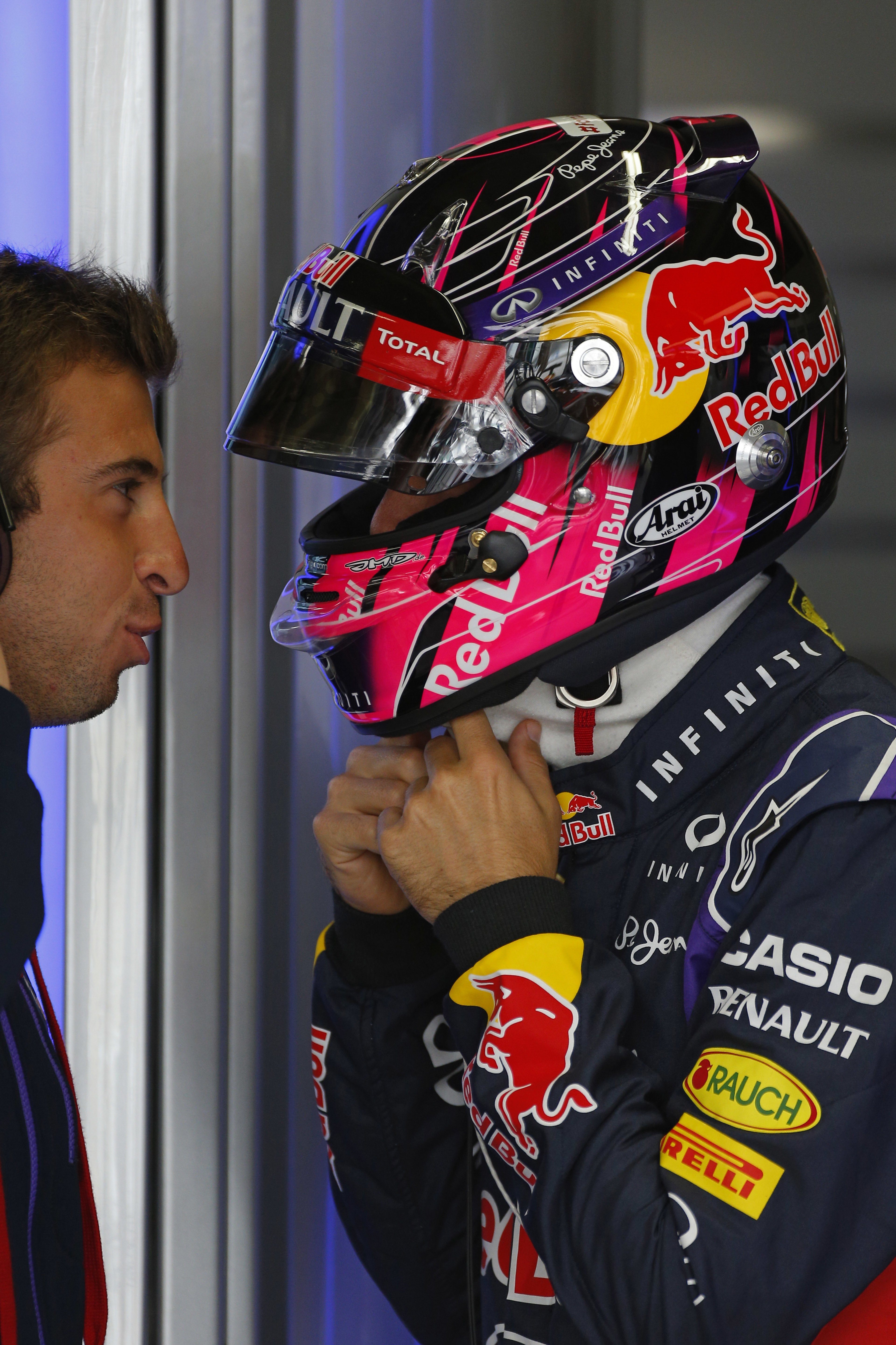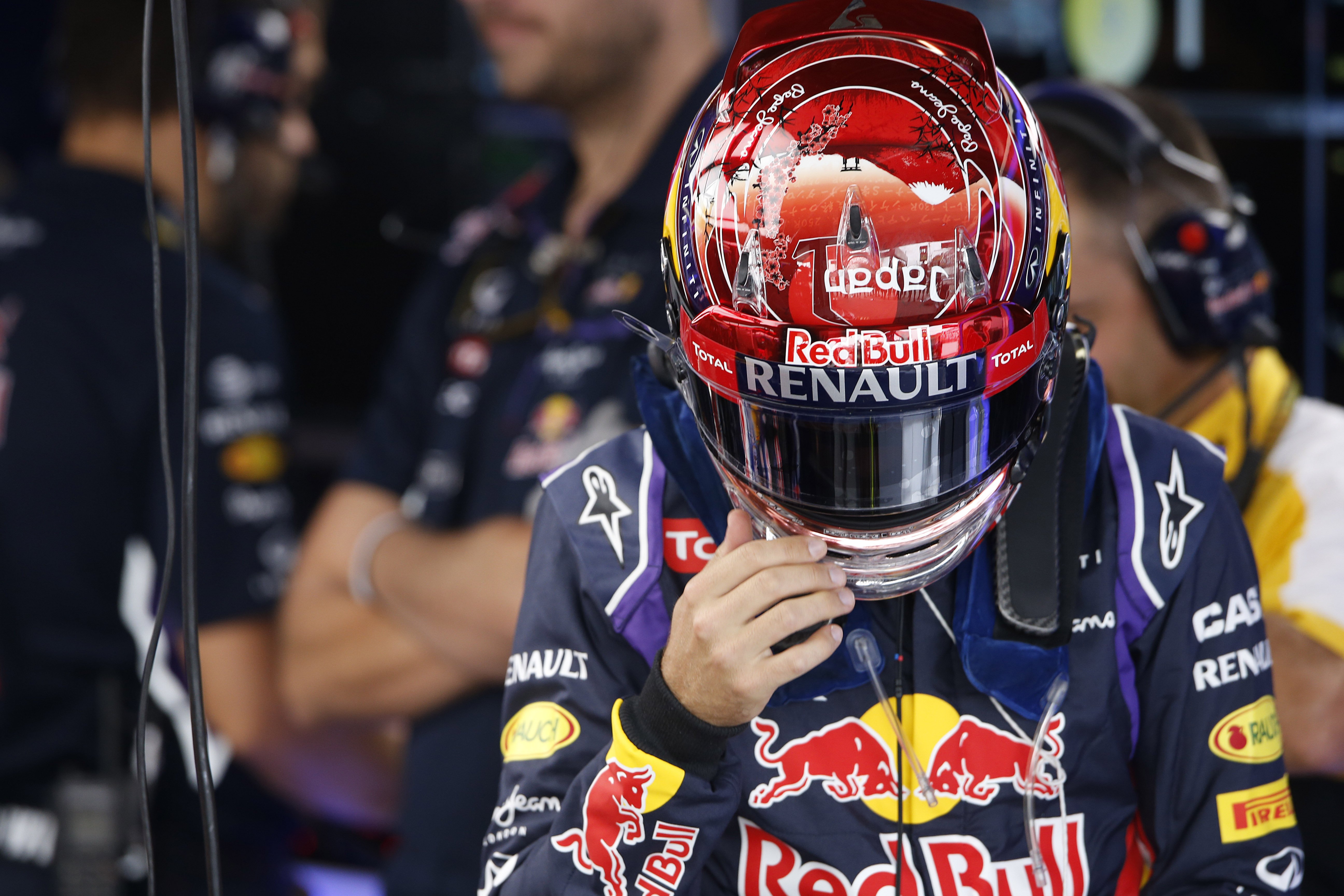 - Suzuka Circuit, Suzuka, Japan. Saturday 4 October 2014. Sebastian Vettel, Red Bull Racing, in the garage. World Copyright: Charles Coates/LAT Photographic. ref: Digital Image _J5R2991