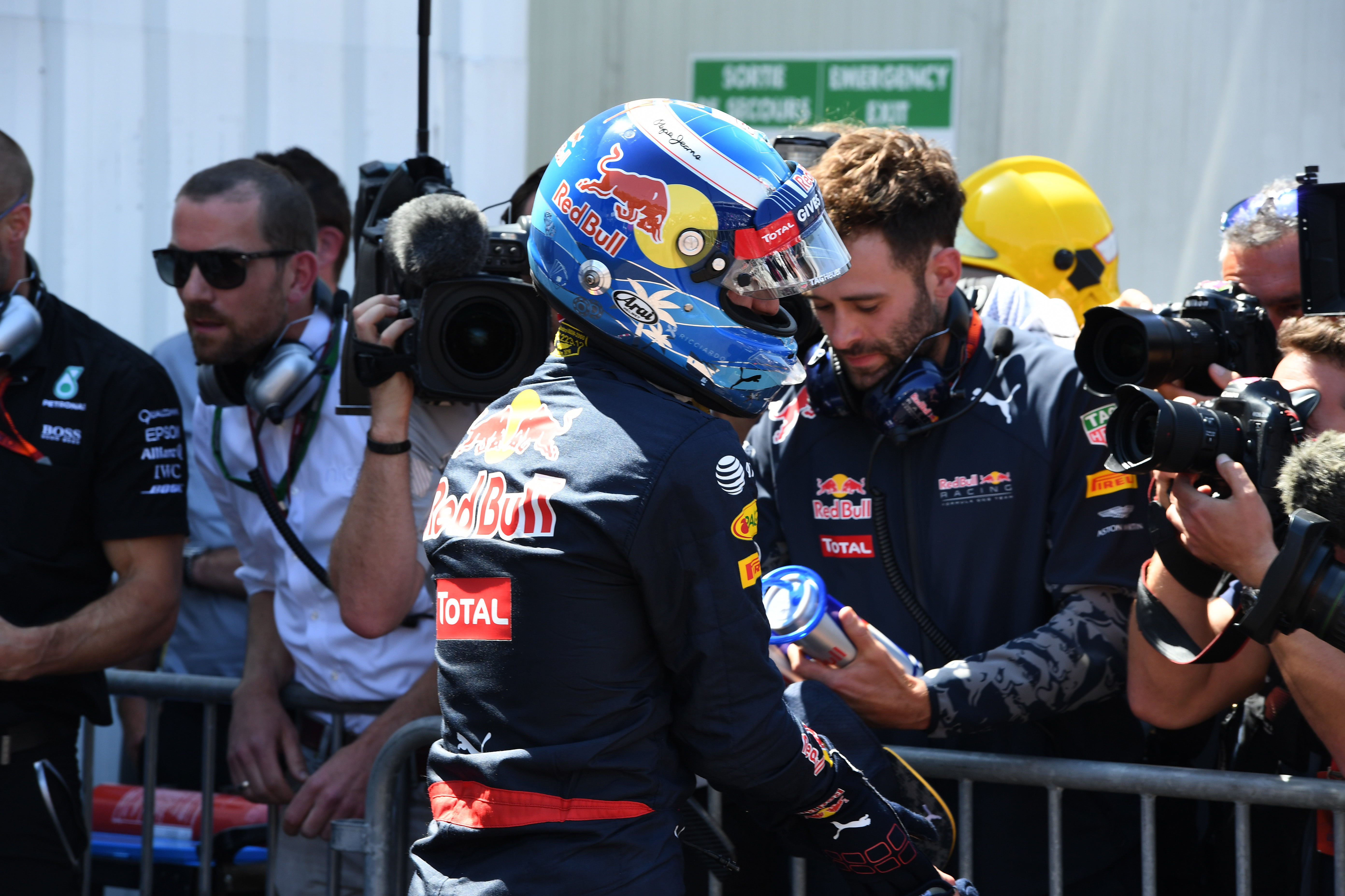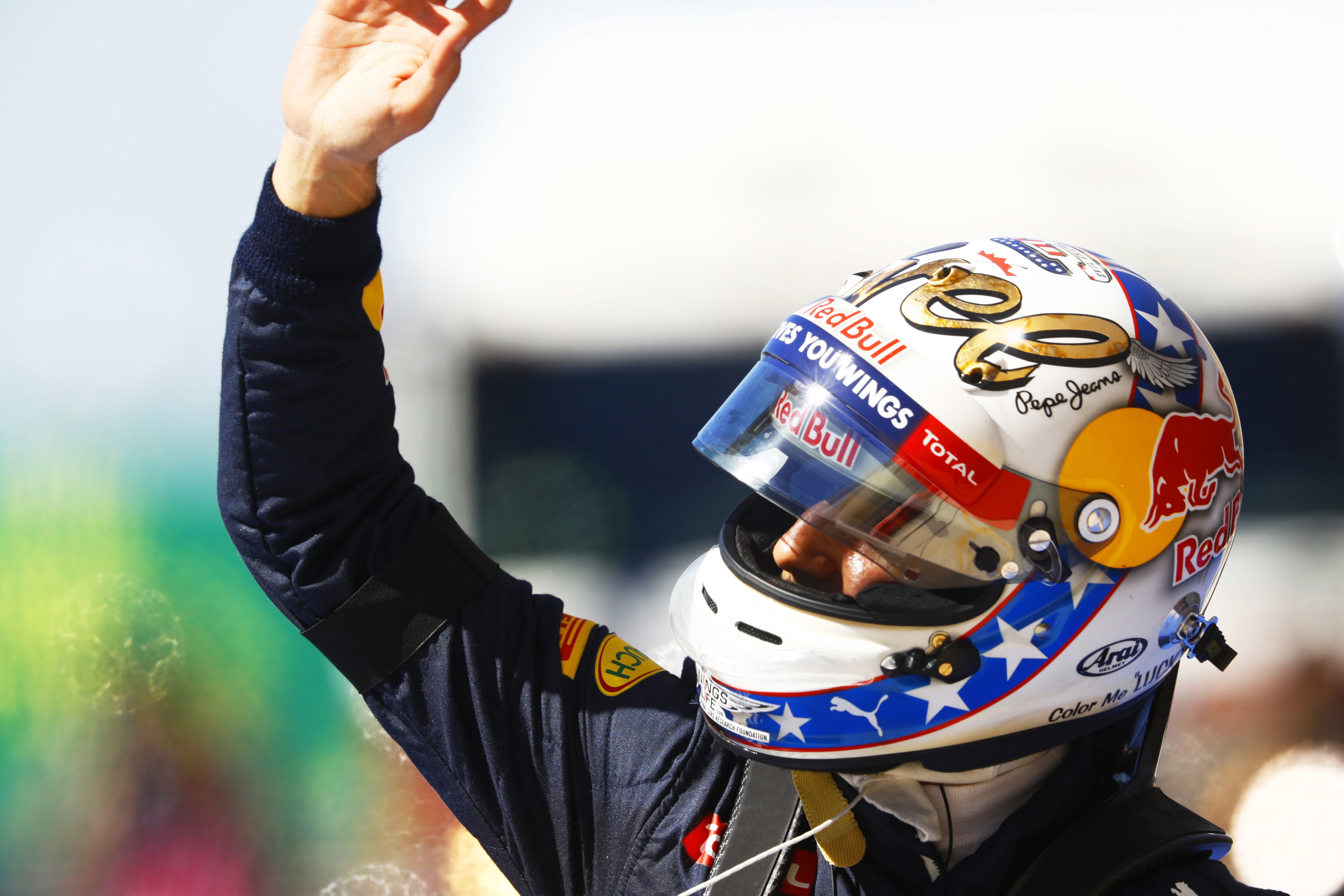 - Circuit of the Americas, Austin Texas, USA. Saturday 22 October 2016. Daniel Ricciardo, Red Bull Racing, celebrates in Parc Ferme after qualifying. World Copyright: Steven Tee/LAT Photographic ref: Digital Image _O3I0588