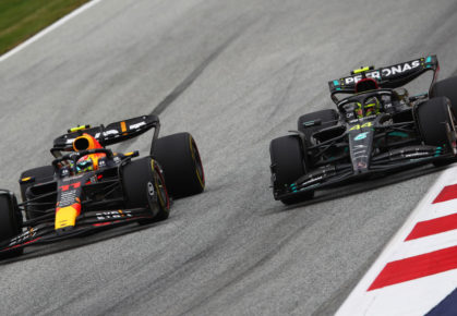 Video: Hamilton en Pérez vechten heerlijk duel uit tijdens de Grand Prix van Oostenrijk